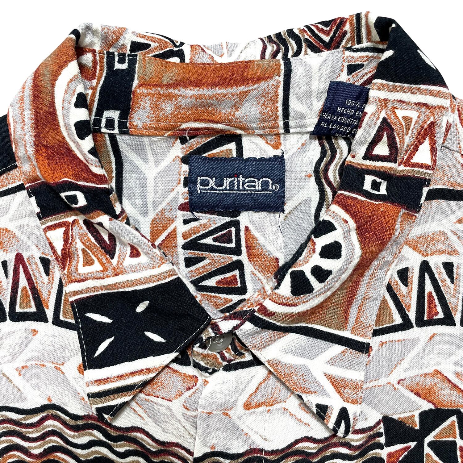 USA 古着 Puritan ピューリタン レーヨン アロハシャツ ハワイアンシャツ トライバル柄 総柄 メンズXL ヴィンテージ BF2933