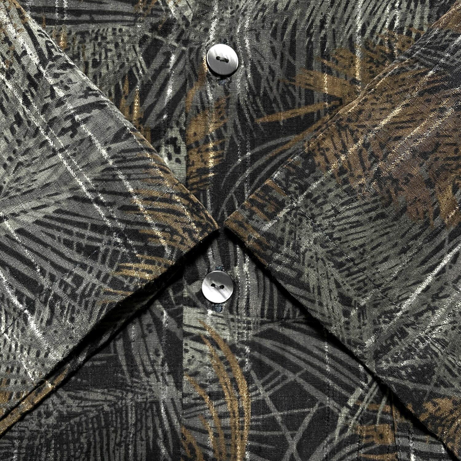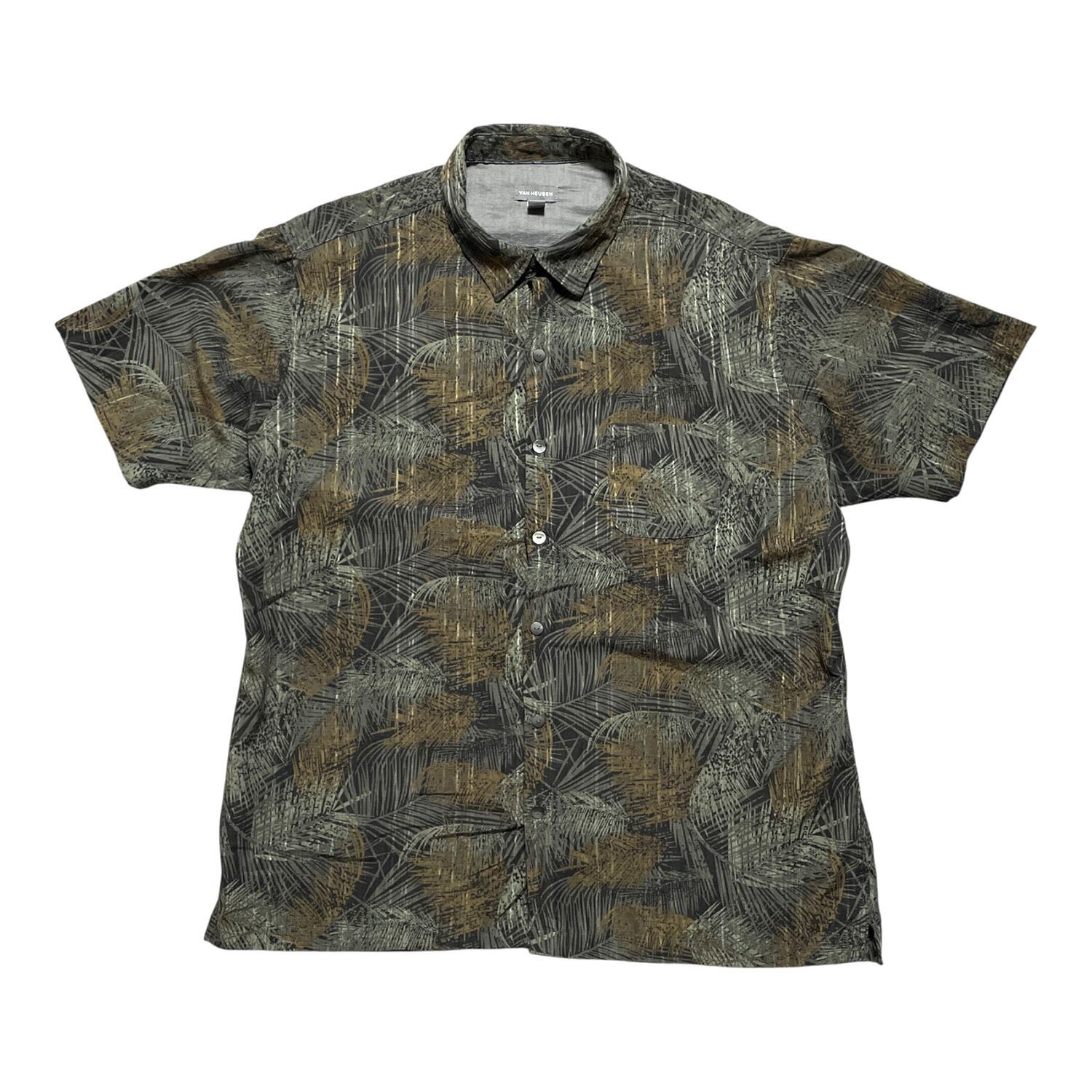 USA 古着 VAN HEUSEN バンヒューゼン ポリエステル アロハシャツ ハワイアンシャツ リーフ柄 メンズXL ブラック系 BF3014