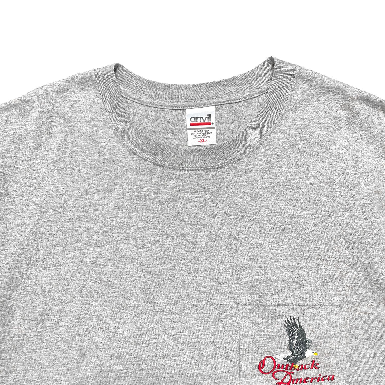 USA 古着 anvil アート Tシャツ オートバックアメリカ ポケT バックプリント メンズXL グレー クルーネック BA3825