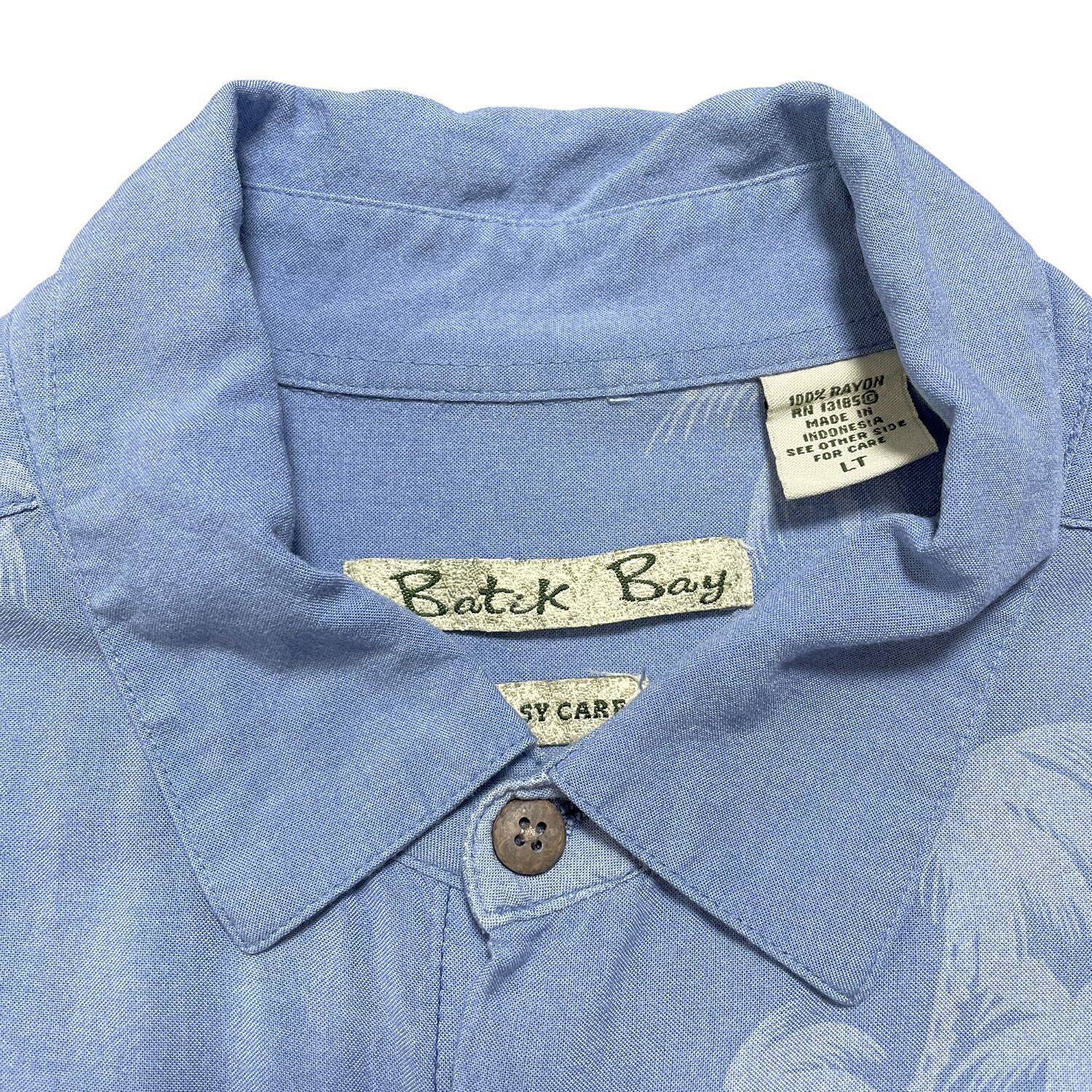 USA 古着 Batik Bay バティックベイ レーヨン アロハシャツ ハワイアンシャツ パームツリー柄 メンズL サックスブルー系 BF3033