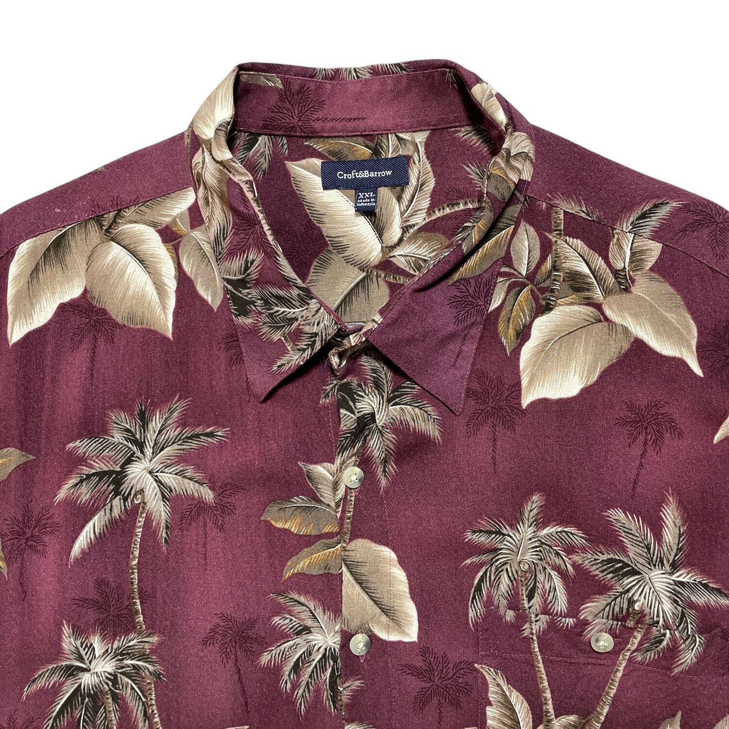 USA 古着 Croft&Barrow クロフト&バロー レーヨン アロハシャツ ハワイアンシャツ リーフ パームツリー メンズXXL ボルドー系 BF3038