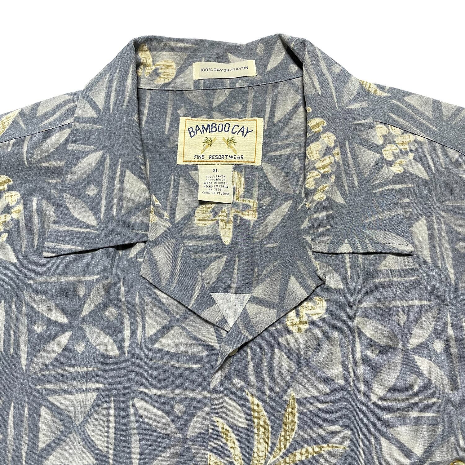 USA 古着 Bamboo Cay バンブーケイ レーヨン 開襟 アロハシャツ ハワイアンシャツ パイナップル柄 メンズXL ブルーグレー系 BF3042