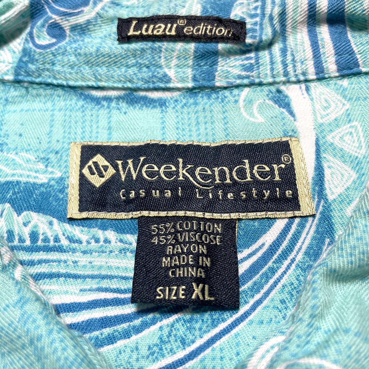 USA 古着 Weekender ヴィンテージ ウィークエンダー コットン レーヨン アロハシャツ ハワイアンシャツ 総柄 メンズXL ブルー BF3044