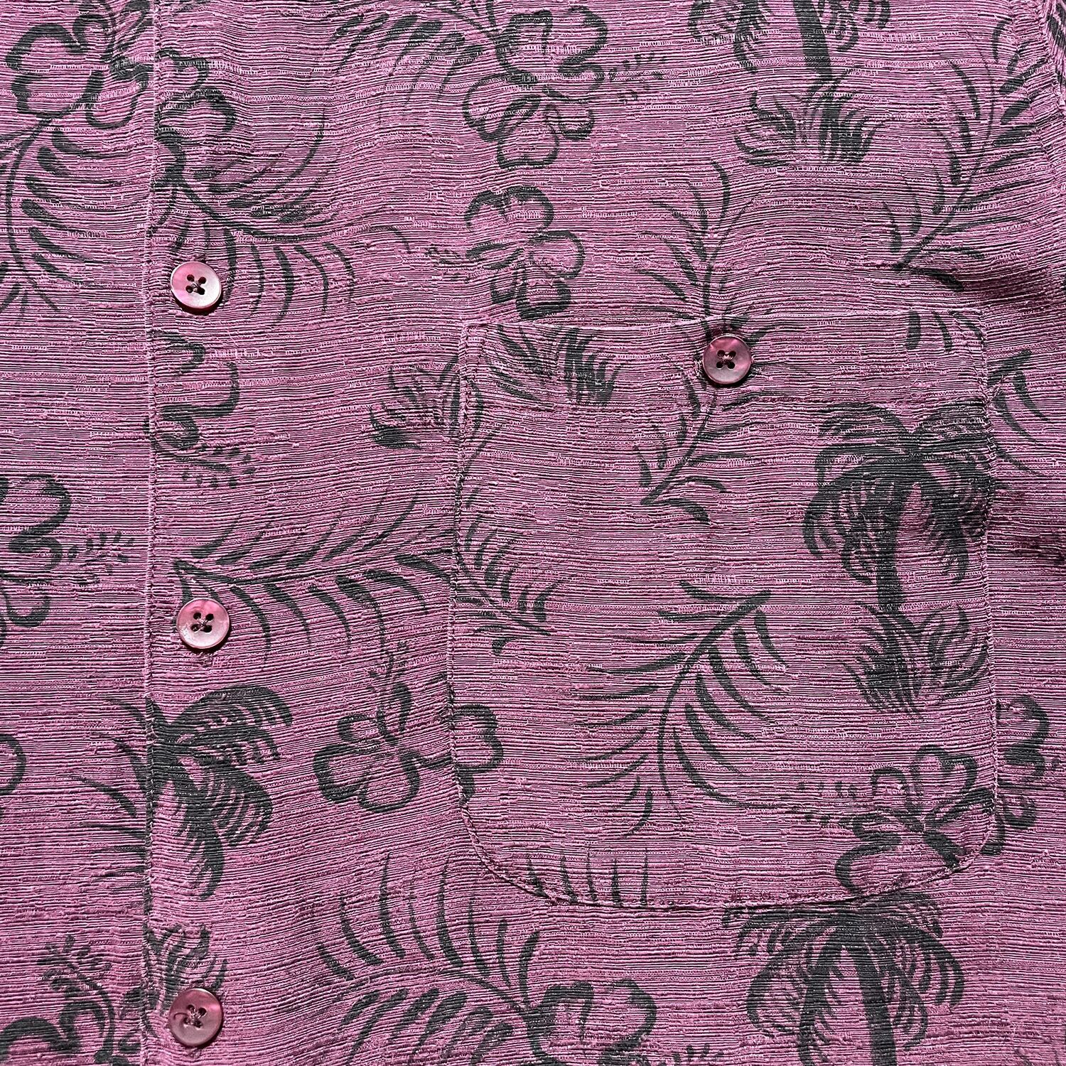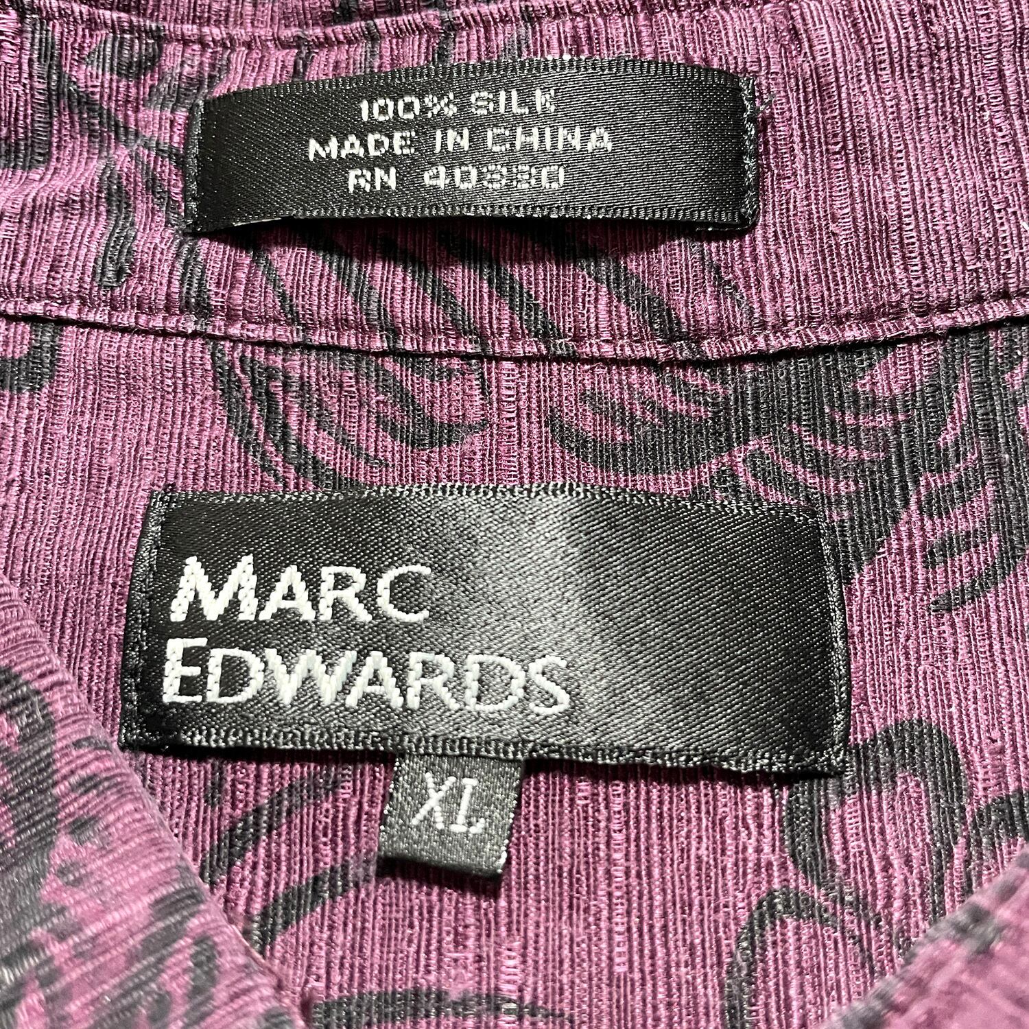 USA 古着 MARC EDWARDS マークエドワーズ シルク アロハシャツ ハワイアンシャツ ハイビスカス 総柄 メンズXL ワインレッド BF3077