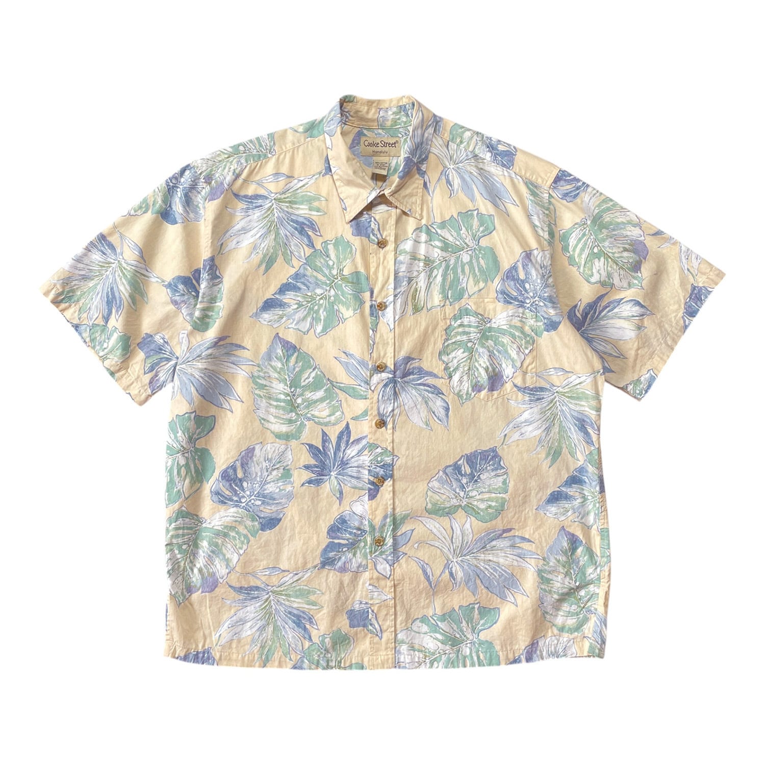 USA 古着 Cooke Street クックストリート ホノルル コットン アロハシャツ ハワイアンシャツ リーフ柄 メンズXL ヴィンテージ BF3103