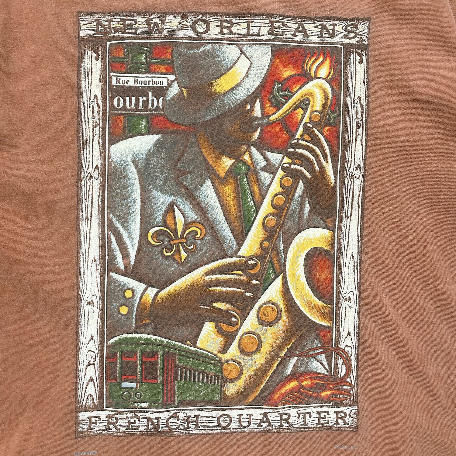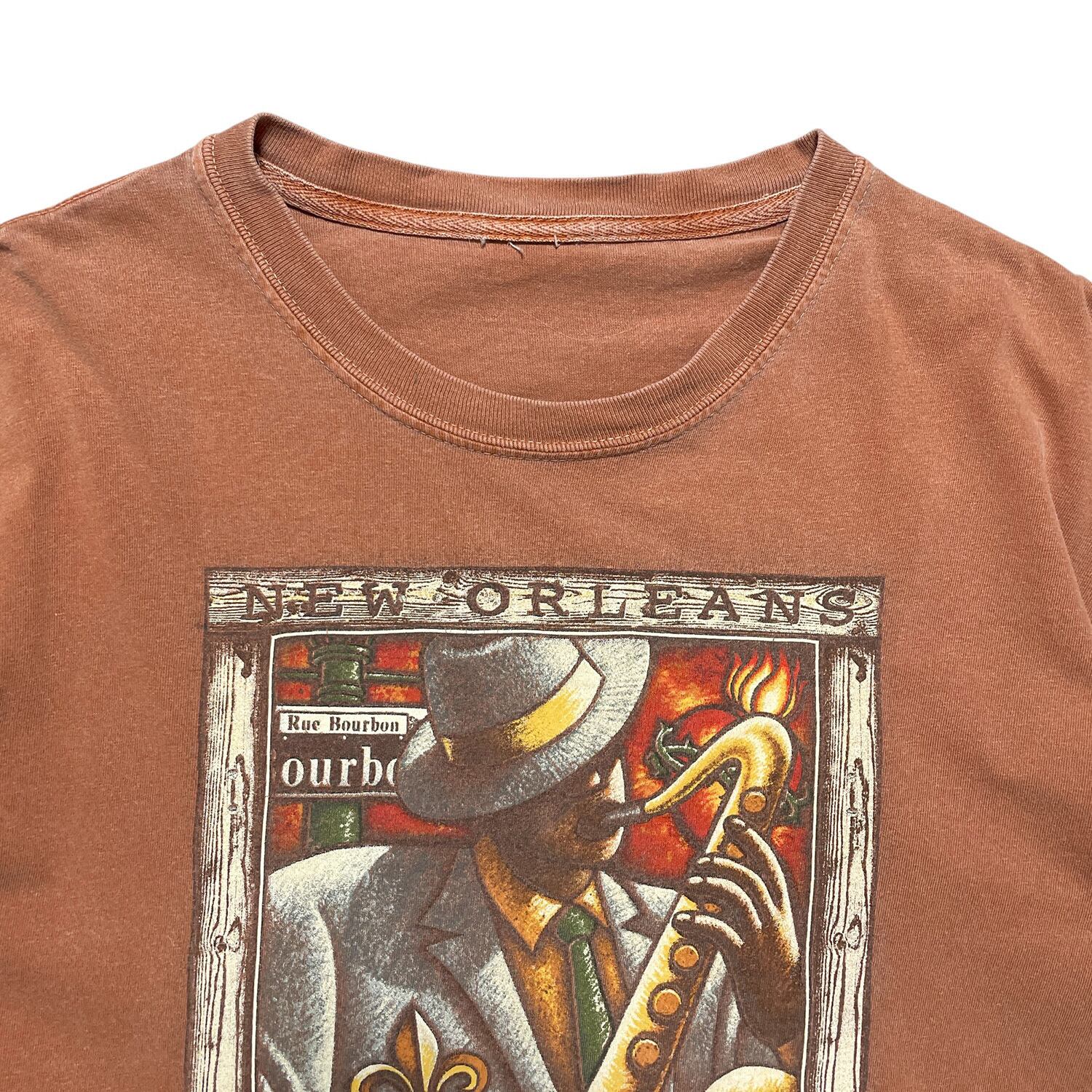 USA 古着 ジャス アート Tシャツ プリント ニューオリンズ オレンジ クルーネック jazz メンズM 程度 BA3831