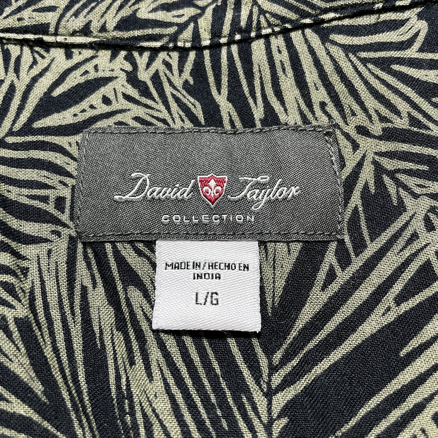 USA 古着 David Taylor デビッドテイラー レーヨン 開襟 アロハシャツ ハワイアンシャツ ブラック リーフ柄 メンズL BF3110