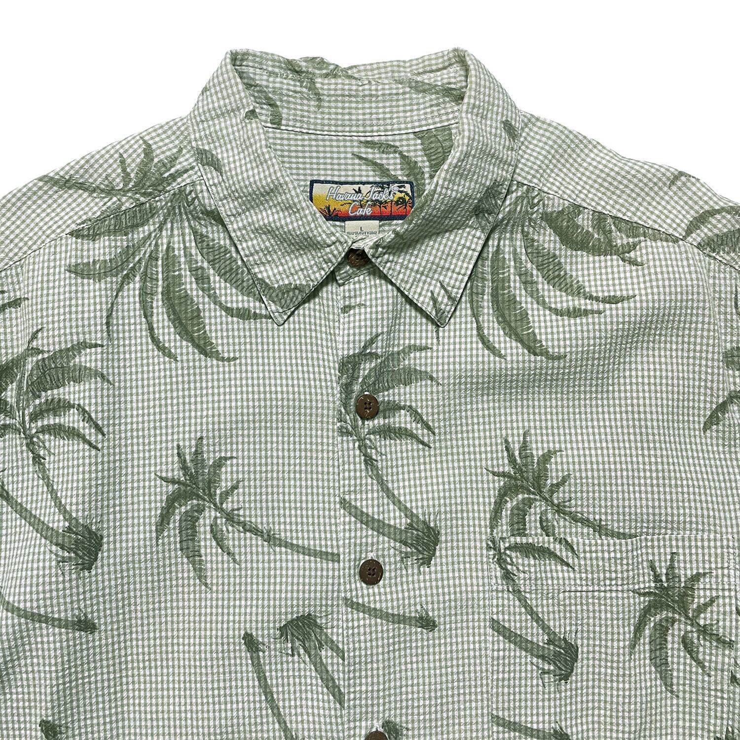 USA 古着 Havana Jacks Cafe ハバナジャックスカフェ コットン ギンガムチェック アロハシャツ ハワイアンシャツ リーフ柄 メンズL BF3123