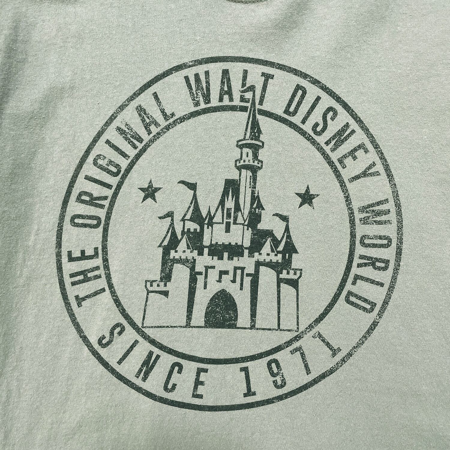 USA 古着 ディズニー Disney Tシャツ シンデレラ城 プリント カーキ クルーネック メンズM BA3861