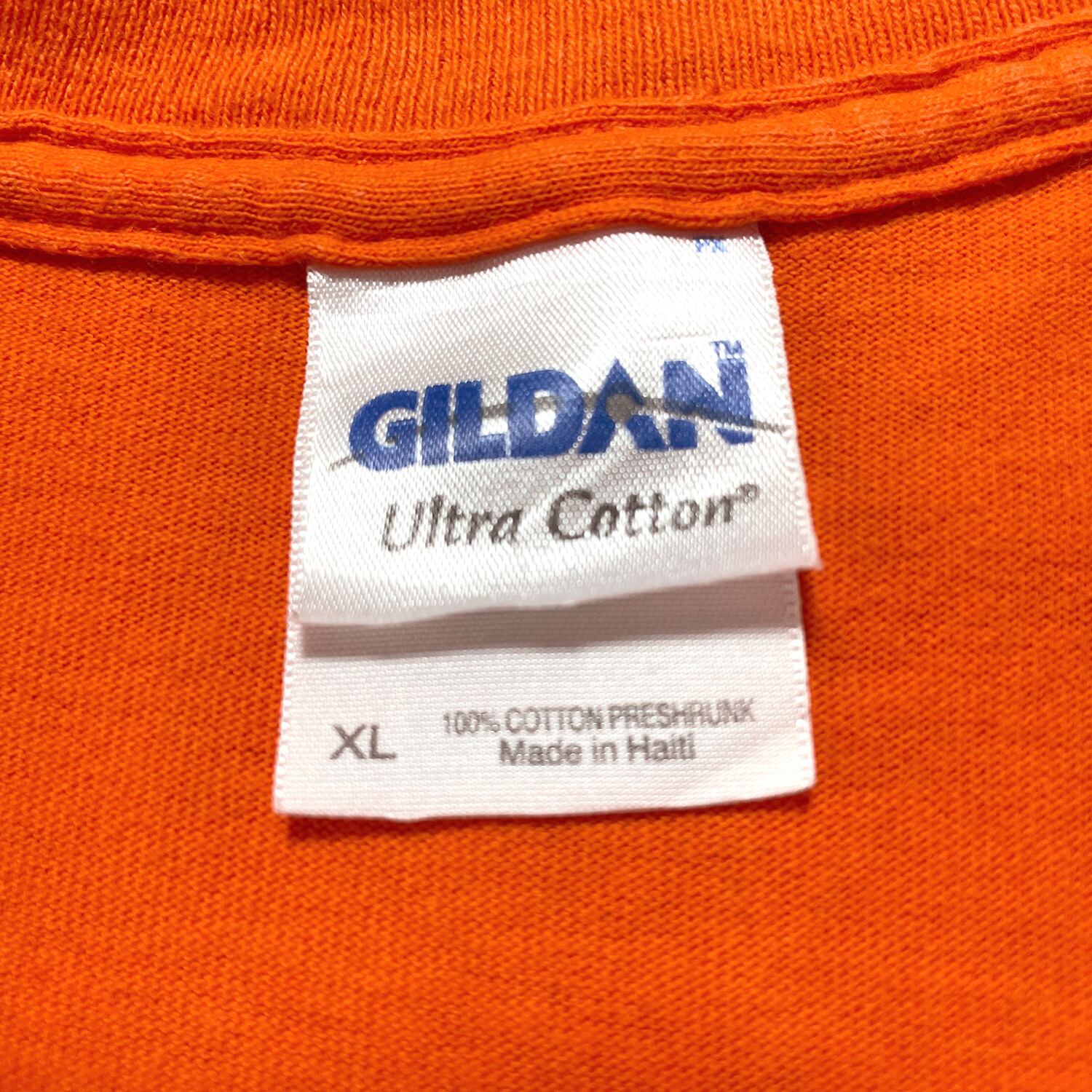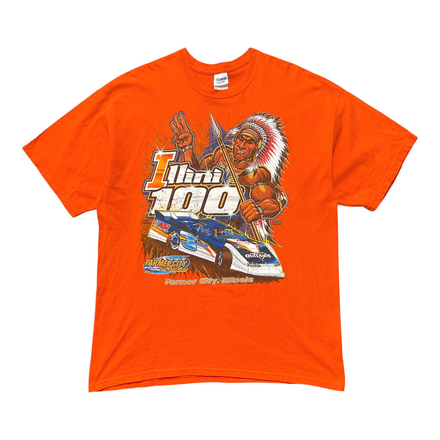 USA 古着 レーシング Tシャツ ネイティブインディアン インディアン メンズXL ビッグプリント オレンジ BA3958