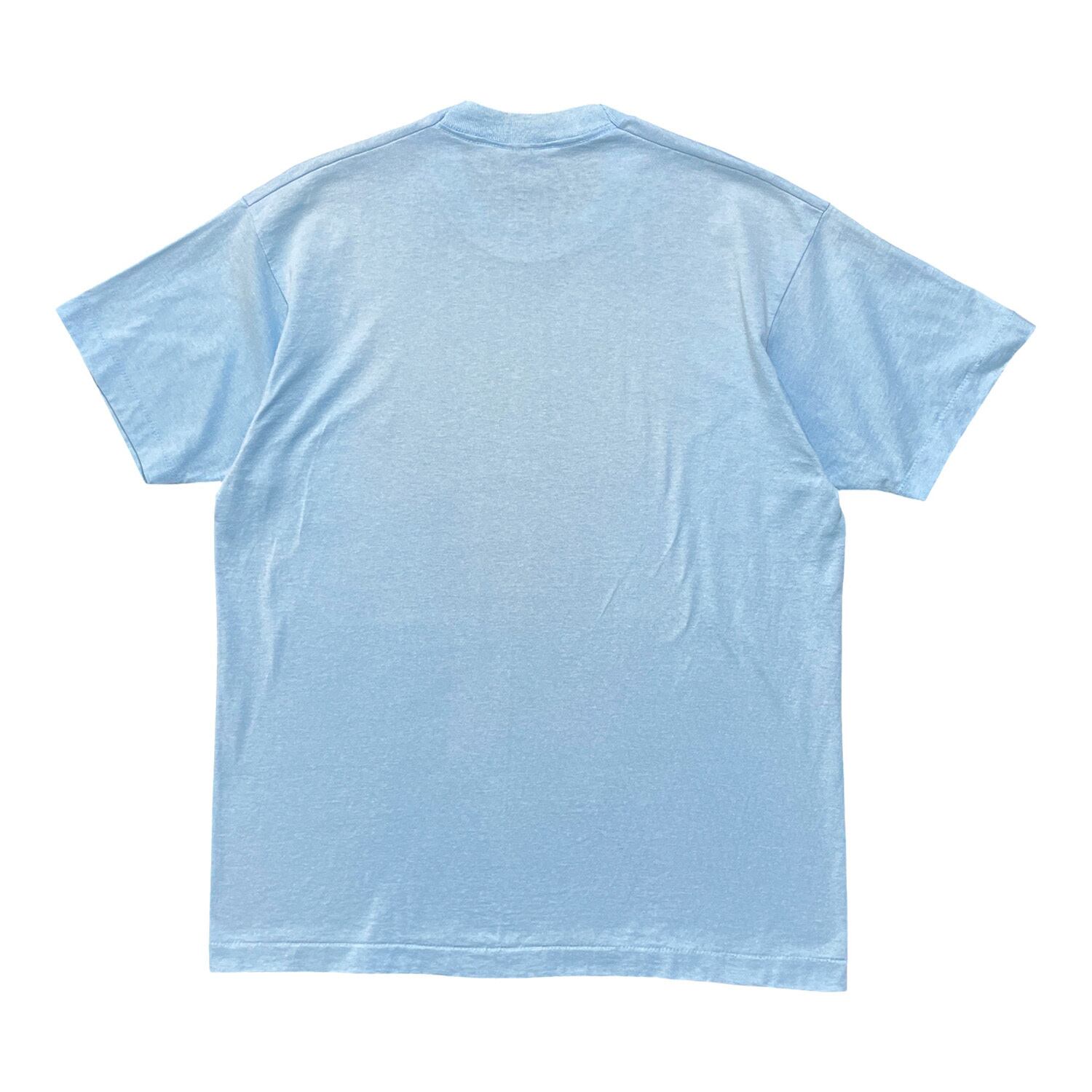 古着 USA製 90S プリント Tシャツ 「退職して楽しんでいる」ヴィンテージ メンズL ライトブルー シングルステッチ BA3967