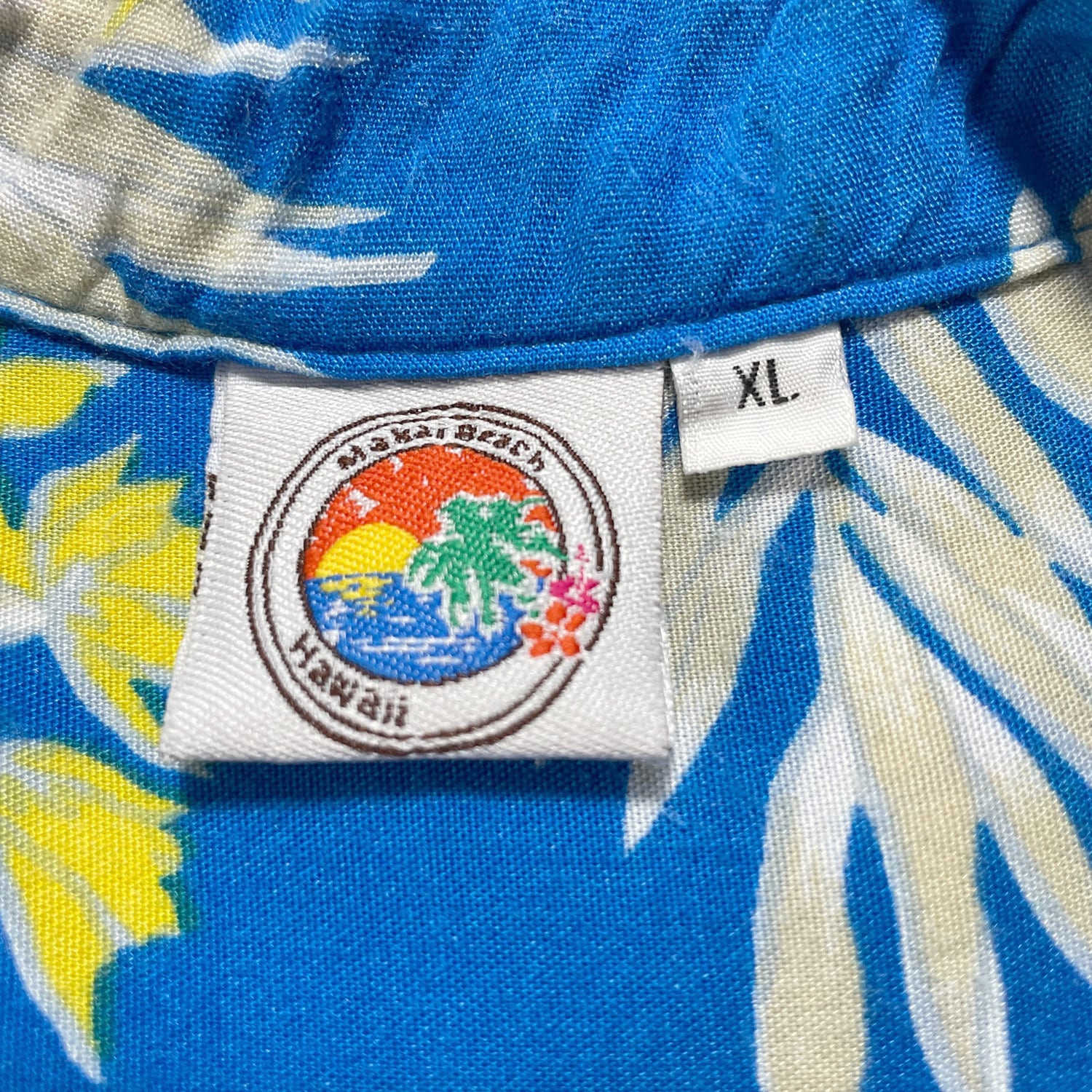 USA 古着 MAKAI BEACH HAWAII ヴィンテージ レーヨン 開襟 アロハシャツ ハワイアンシャツ メンズXL ブルー ハイビスカス BF3132