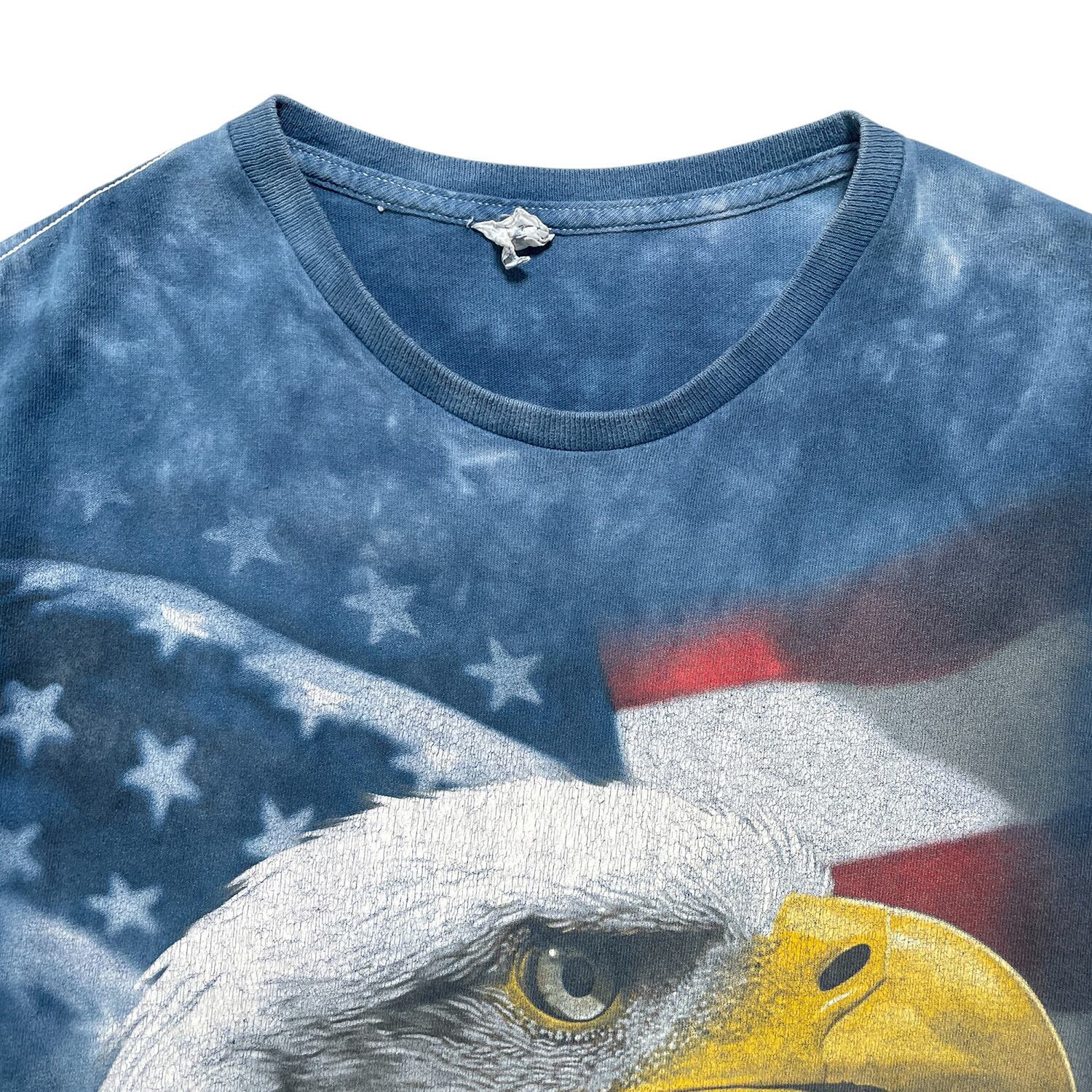 USA 古着 イーグル 星条旗 Tシャツ タイダイ プリント ネイビー メンズM クルーネック 白頭鷲 BA3878