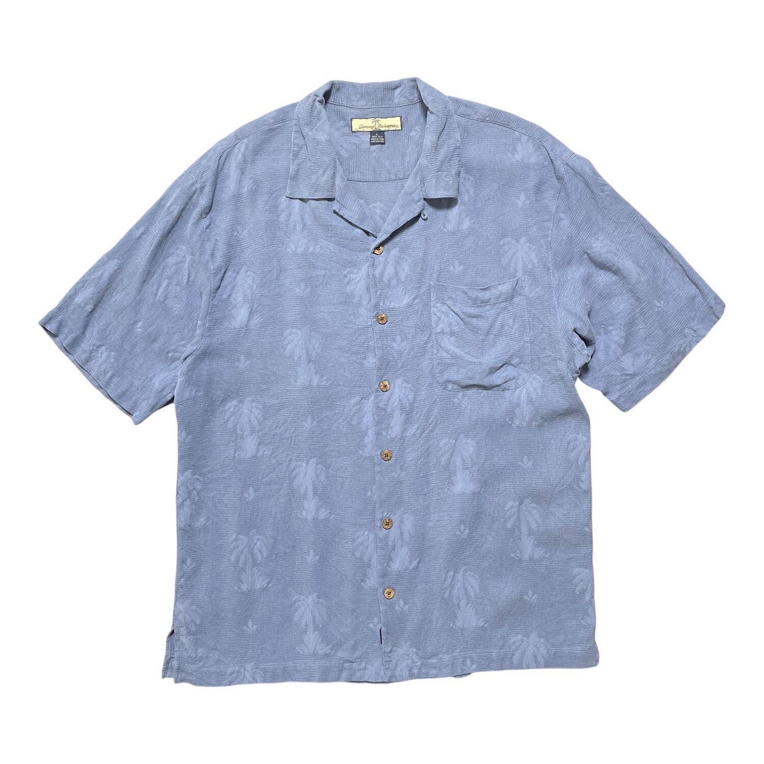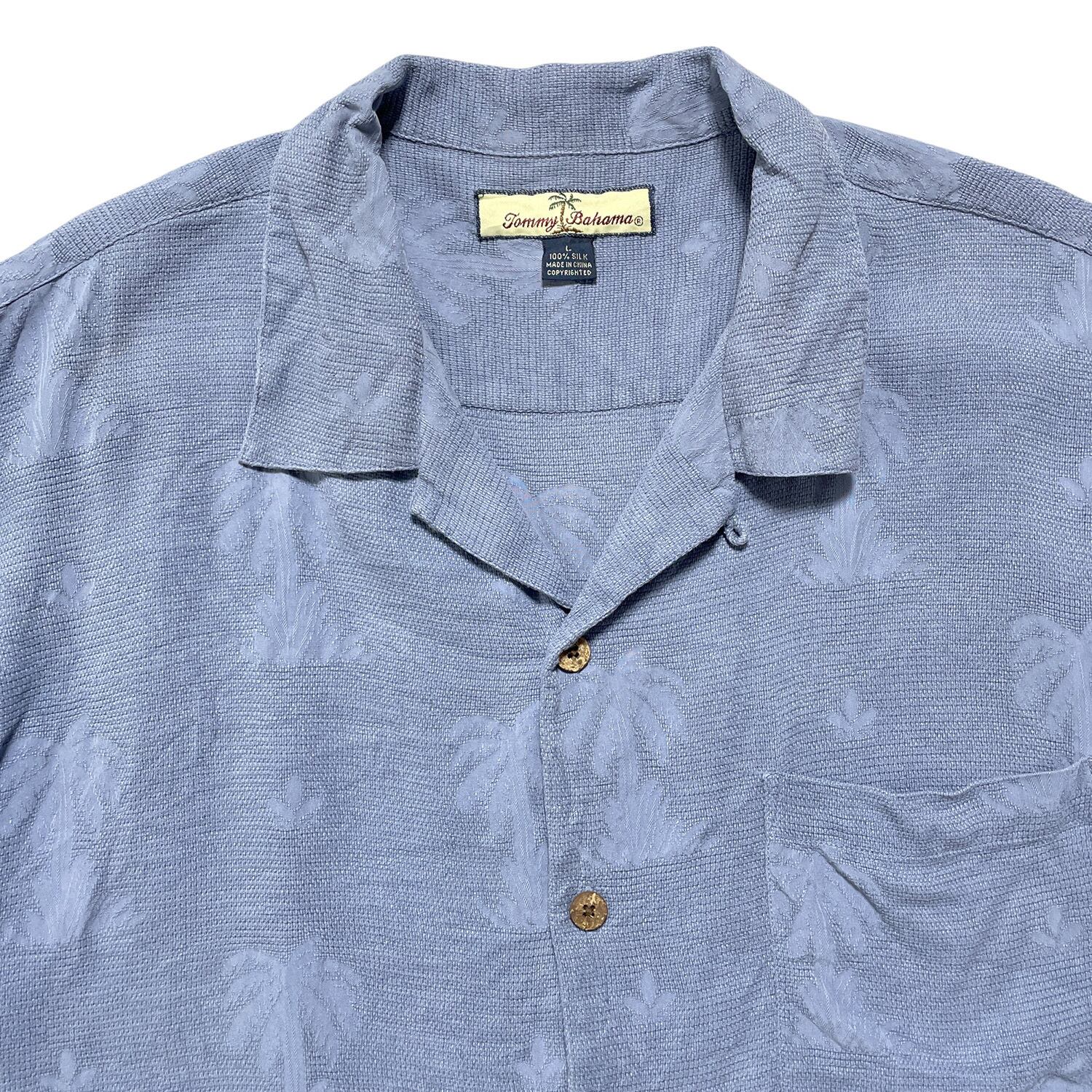 USA 古着 Tommy Bahama トミーバハマ シルク ジャガード 開襟 キャンプシャツ アロハシャツ ハワイアンシャツ メンズL 薄ネイビー系 BF3183