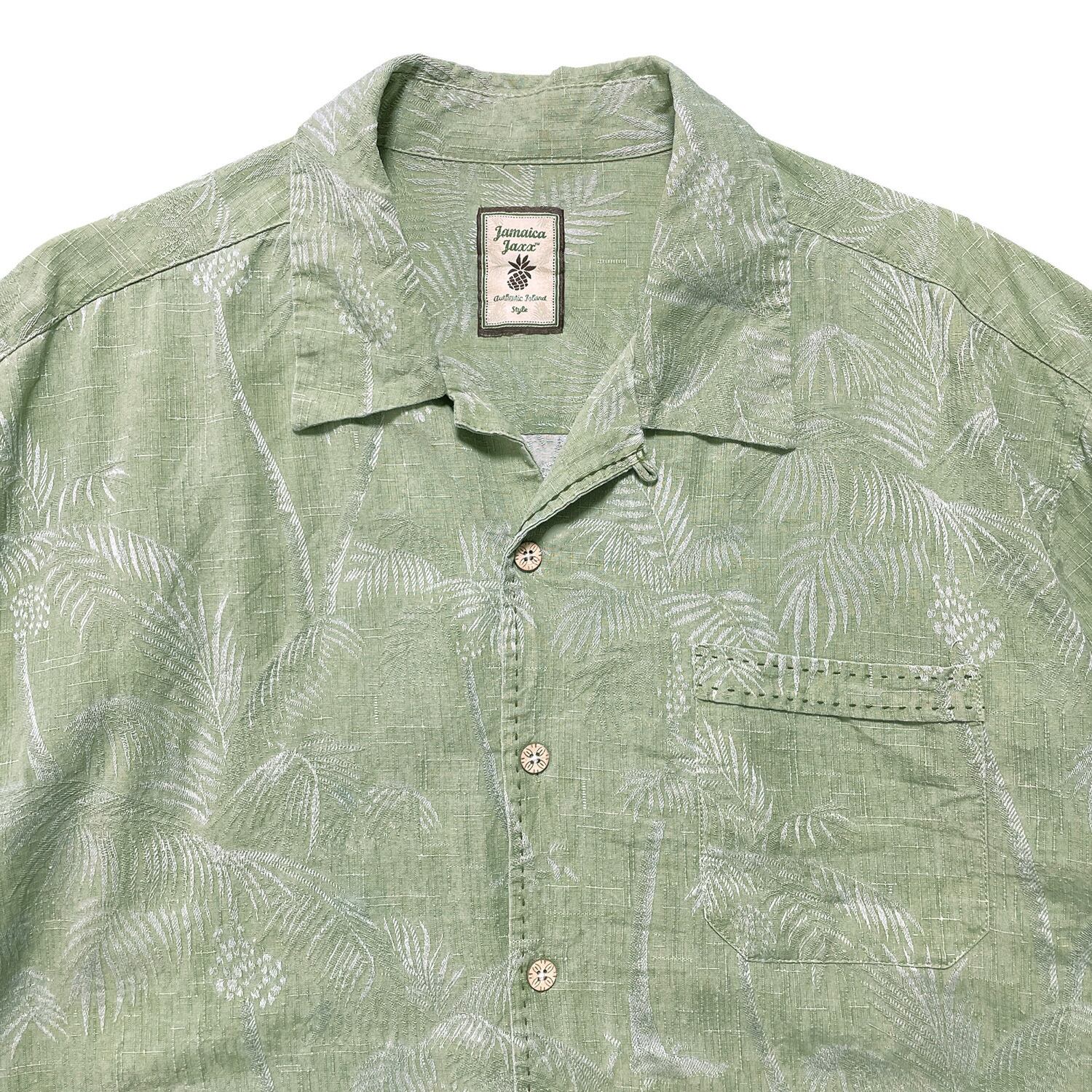 USA 古着 Jamaica Jaxx ジャマイカジャックス シルク ジャガード 開襟 アロハシャツ ハワイアンシャツ メンズXL 薄グリーン系 BF3184