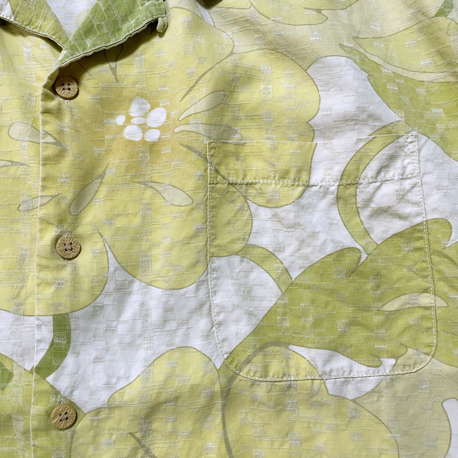 USA 古着 Tommy Bahama トミーバハマ シルク 開襟 キャンプシャツ アロハシャツ ハワイアンシャツ メンズXL 黄緑色系 リーフ柄 BF3230