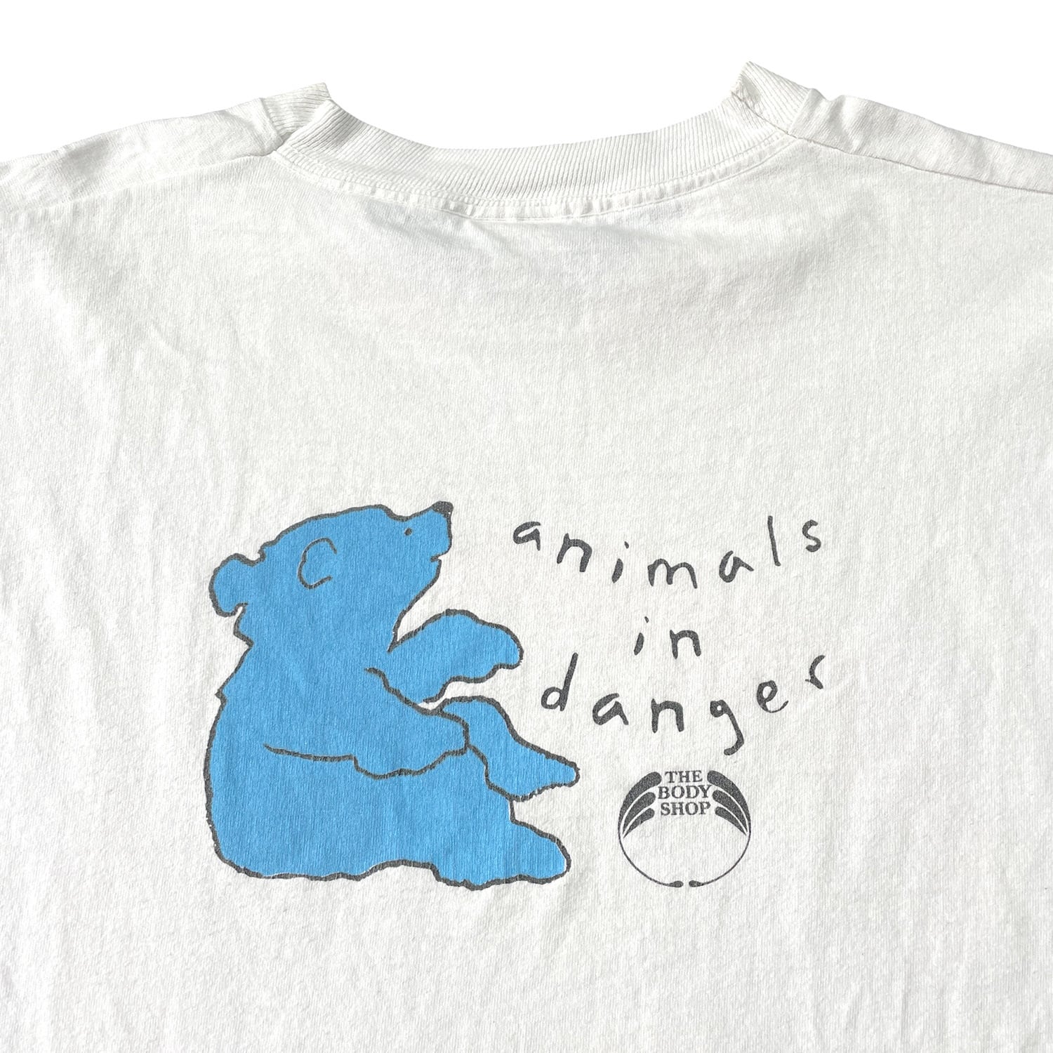 古着 USA製 90S THE BODY SHOP ボディショップ Tシャツ ヴィンテージ 企業系 アニマルプリント ホワイト メンズXL シングルステッチ BA3906