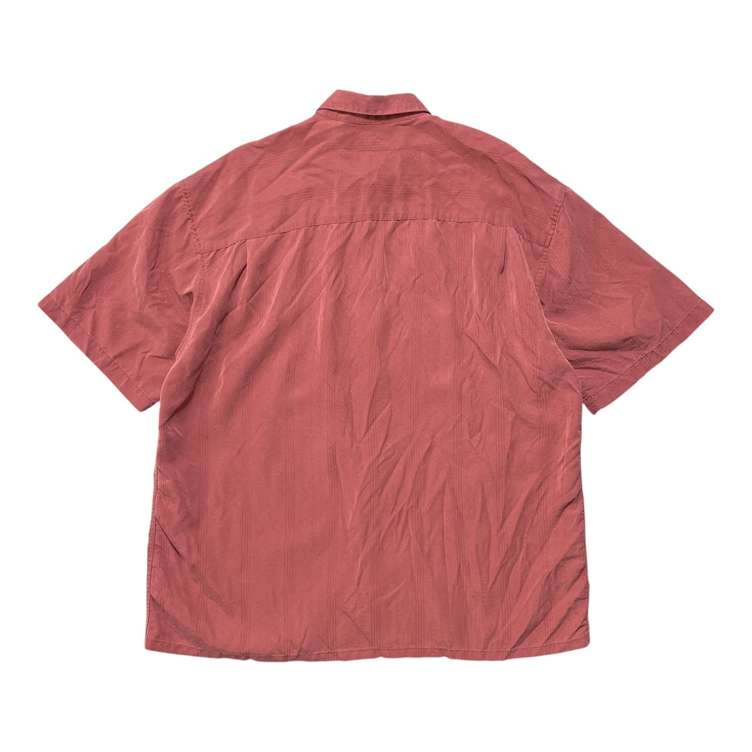 USA 古着 Bamboo Cay バンブーケイ レーヨン/ポリ アロハシャツ ハワイアンシャツ 刺繍 リーフ柄 メンズL マルーン BF3292