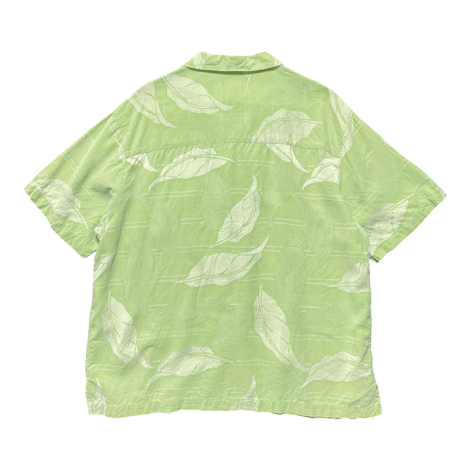 USA 古着 Paradise Collection パラダイスコレクション シルク 開襟 アロハシャツ ハワイアンシャツ リーフ柄 メンズXL グリーン系 BF3324
