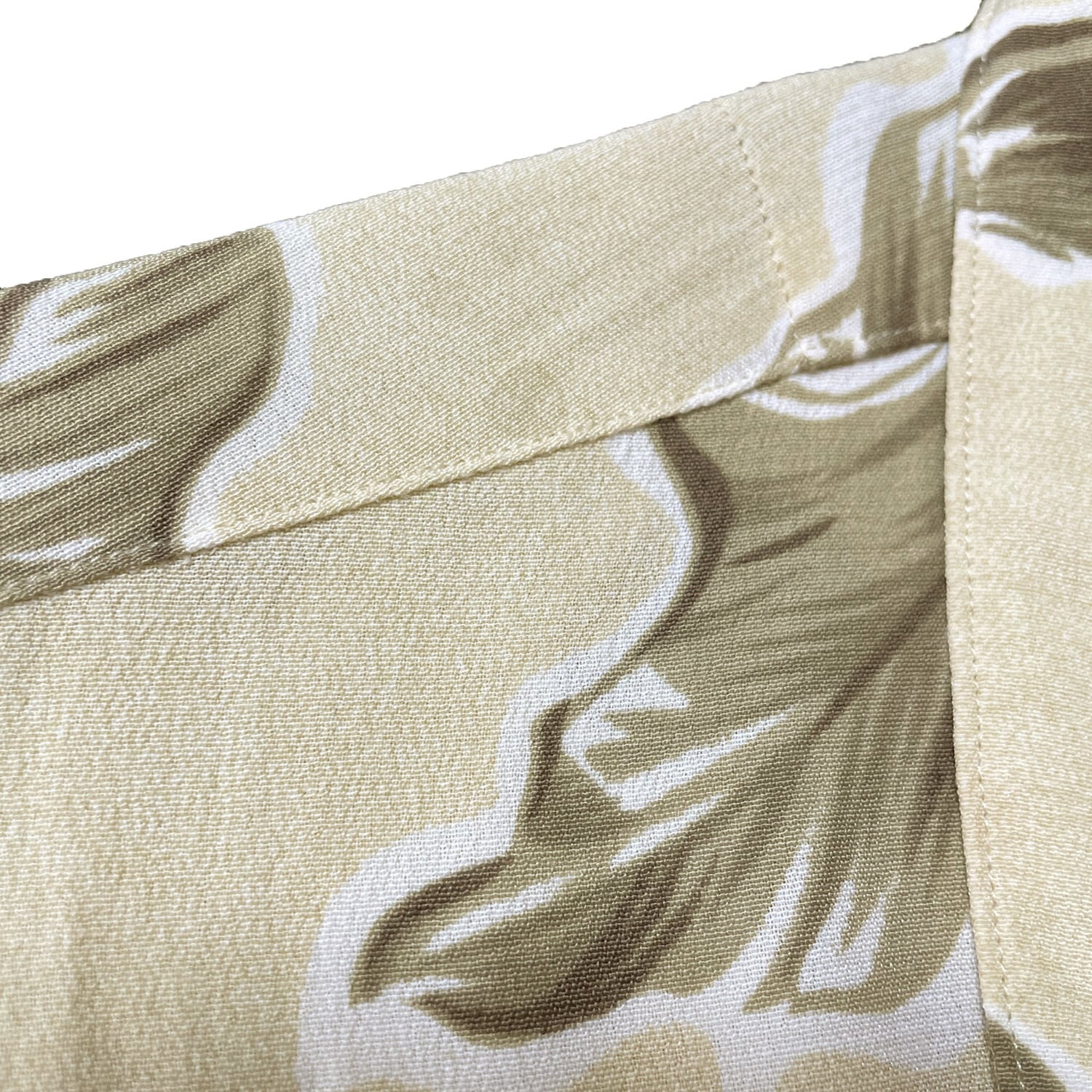 USA 古着 REUNION リユニオン レーヨン ハワイアンシャツ 開襟 総柄 リーフ柄 メンズL ベージュ BF3336