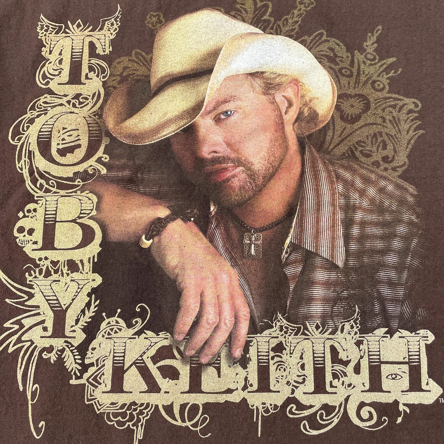 USA 古着 トビーキース TOBY KEITH Tシャツ カントリーミュージック プリント ブラウン メンズL バンドT ロックT BA3914