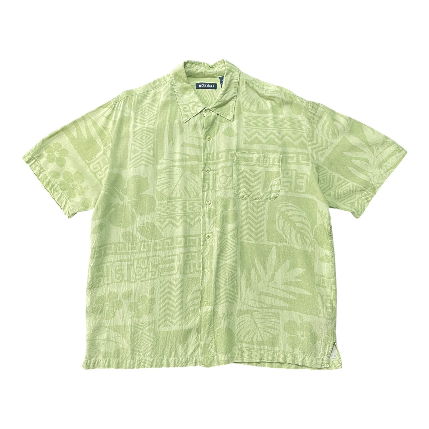 USA 古着 Puritan ピューリタン レーヨン アロハシャツ ハワイアンシャツ リーフ柄 メンズL グリーン系 ヴィンテージ BF3408