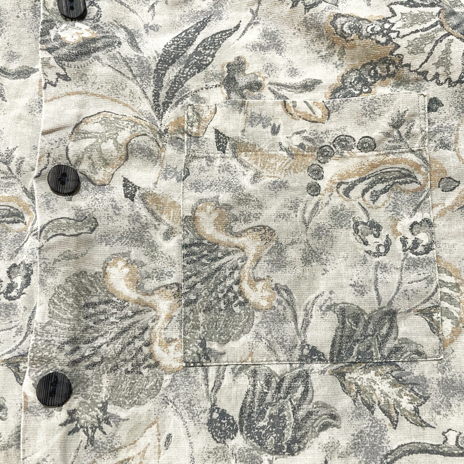 USA 古着 St michael セントマイケル コットン/リネン アロハシャツ ハワイアンシャツ 総柄 花柄 メンズM グレー BF3378