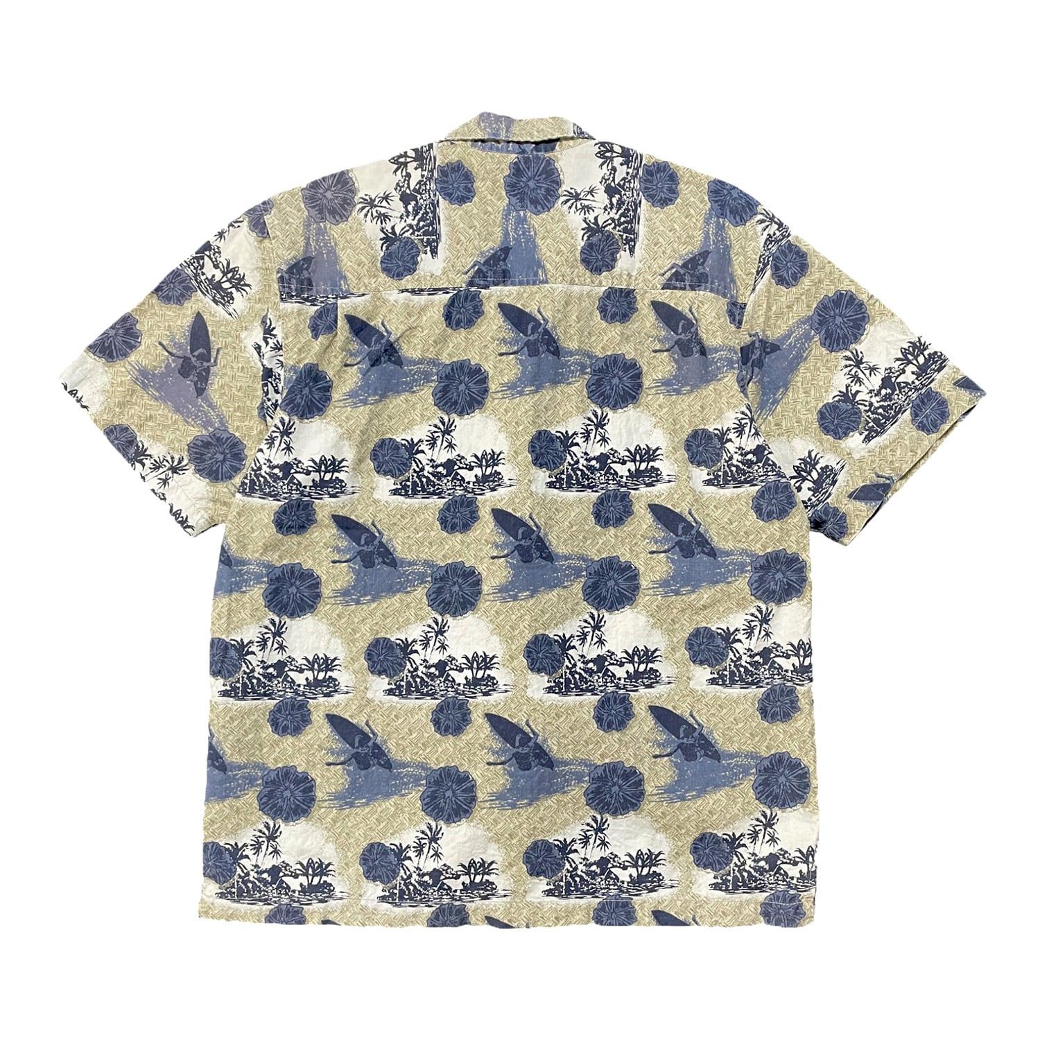 USA 古着 PCH コットン アロハシャツ ハワイアンシャツ 開襟 サーフィン ハイビスカス メンズM ベージュ BF3380