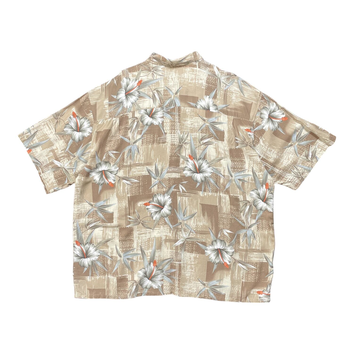USA 古着 KAYLUA BAY カルーアベイ レーヨン アロハシャツ ハワイアンシャツ メンズXXL リーフ ベージュ系 大きいサイズ BF3505