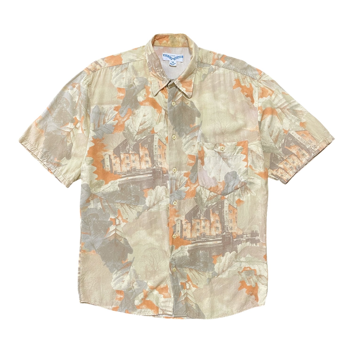 USA 古着 イタリア製 90S MEET AGAIN ヴィンテージ ヴィスコース 総柄 風景プリント 半袖シャツ メンズM ベージュ系 BF3456