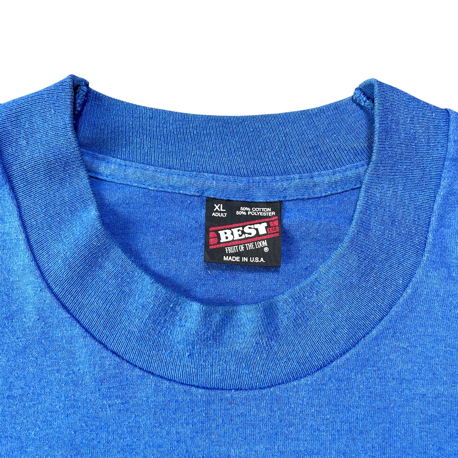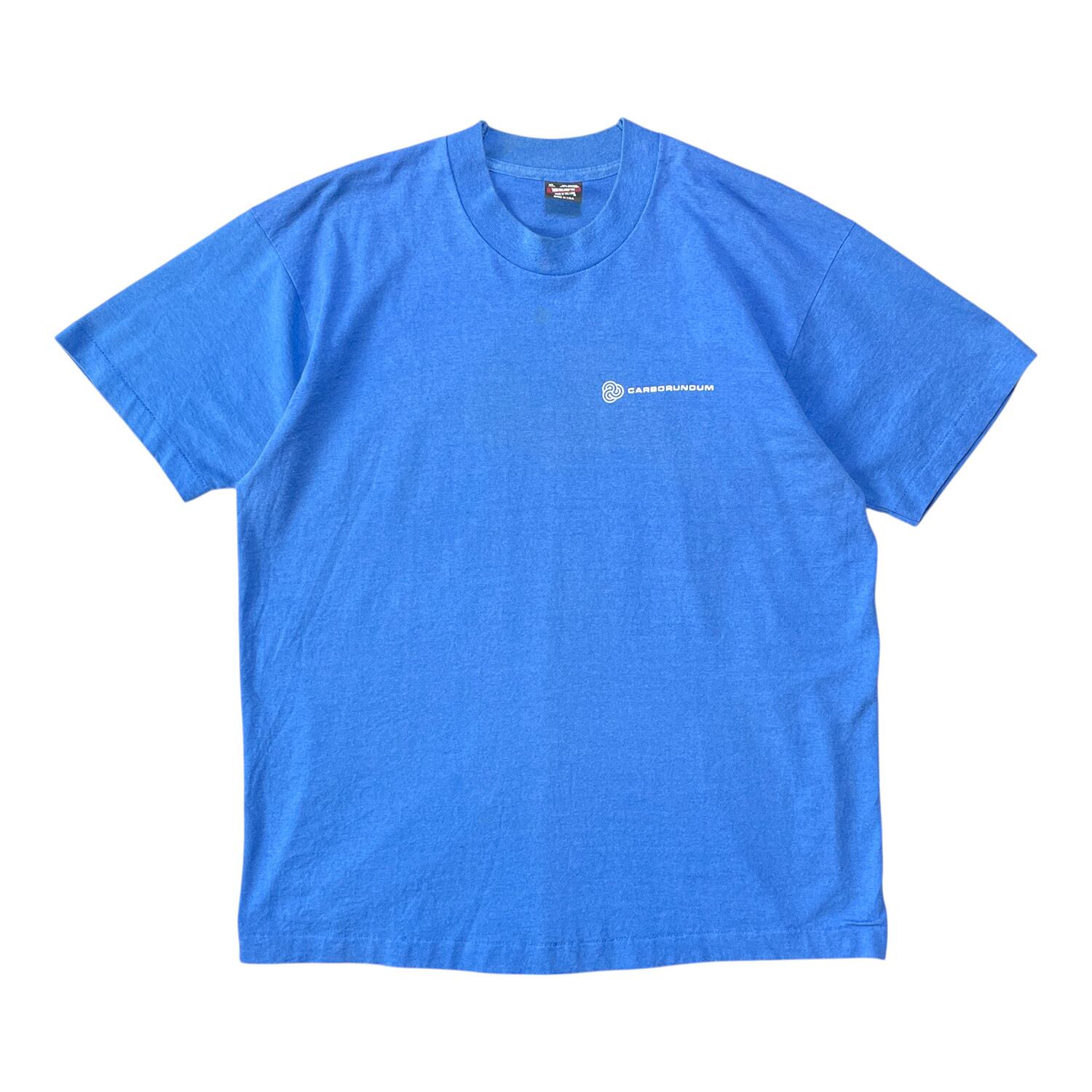 古着 USA製 90s カーボランダム 企業系 Tシャツ ヴィンテージ プリント ブルー メンズXL シングルステッチ クルーネック BA3920