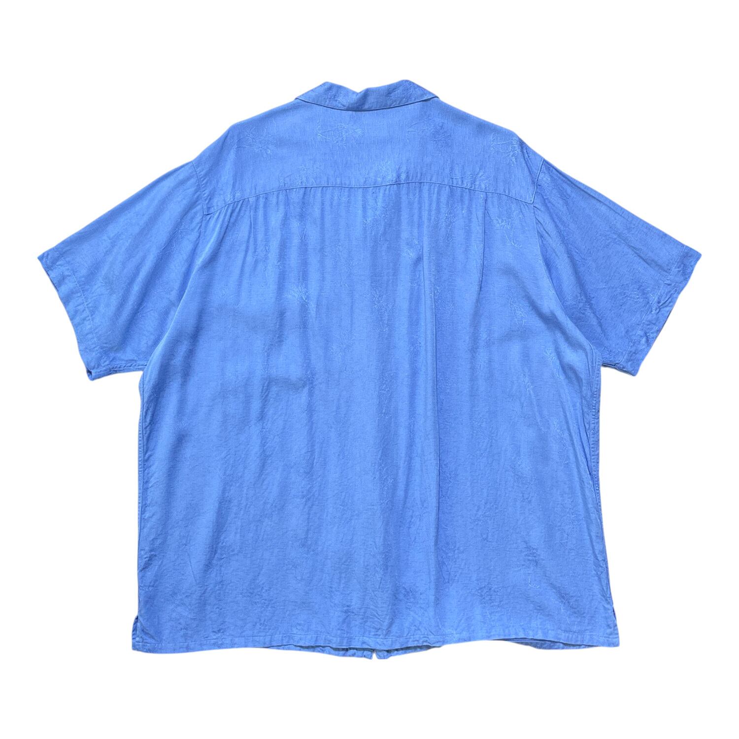 USA 古着 CLUB ROOM クラブルーム 開襟 アロハシャツ ハワイアンシャツ パームツリー ジャガード ブルー メンズXXL 大きいサイズ BF3646