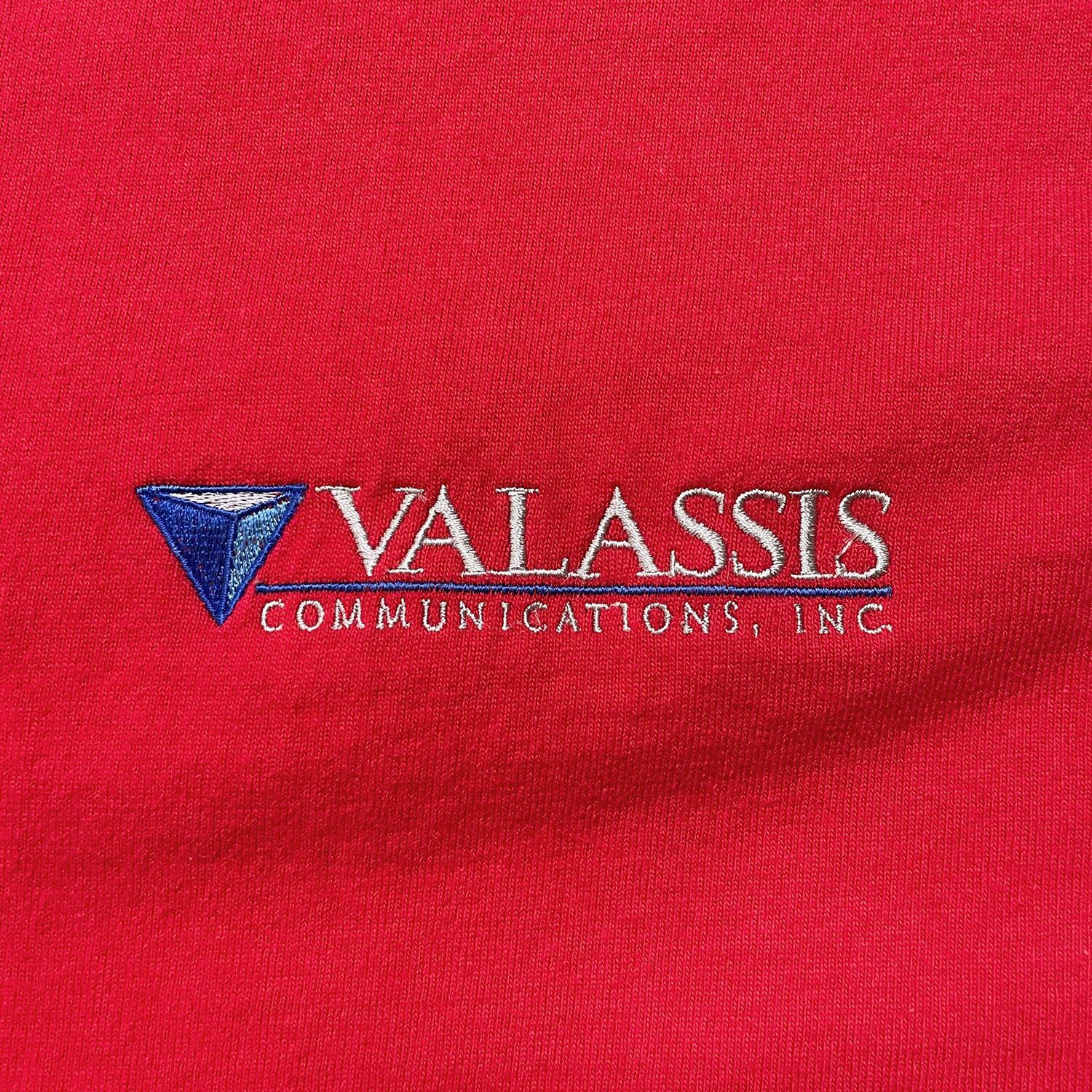 古着 USA製 90S コットンデラックス 企業系 Tシャツ ヴィンテージ 刺繍 ワンポイント レッド メンズL ヘンリーネック シングルステッチ BA4327