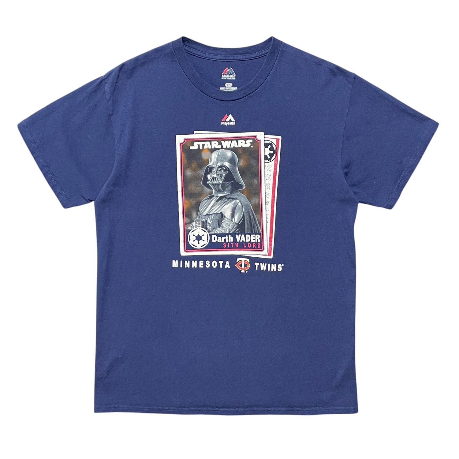 USA 古着 マジェスティック スターウォーズ ミネソタツインズ コラボ Tシャツ プリント ネイビー メンズM クルーネック BA4336