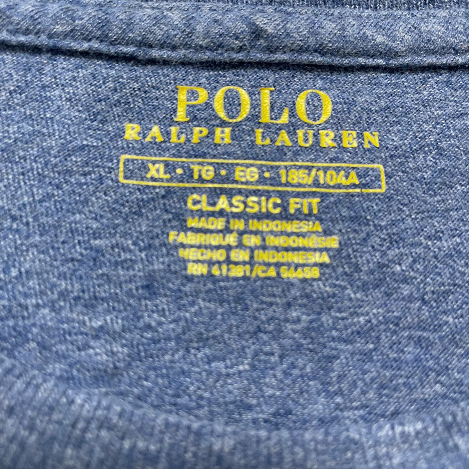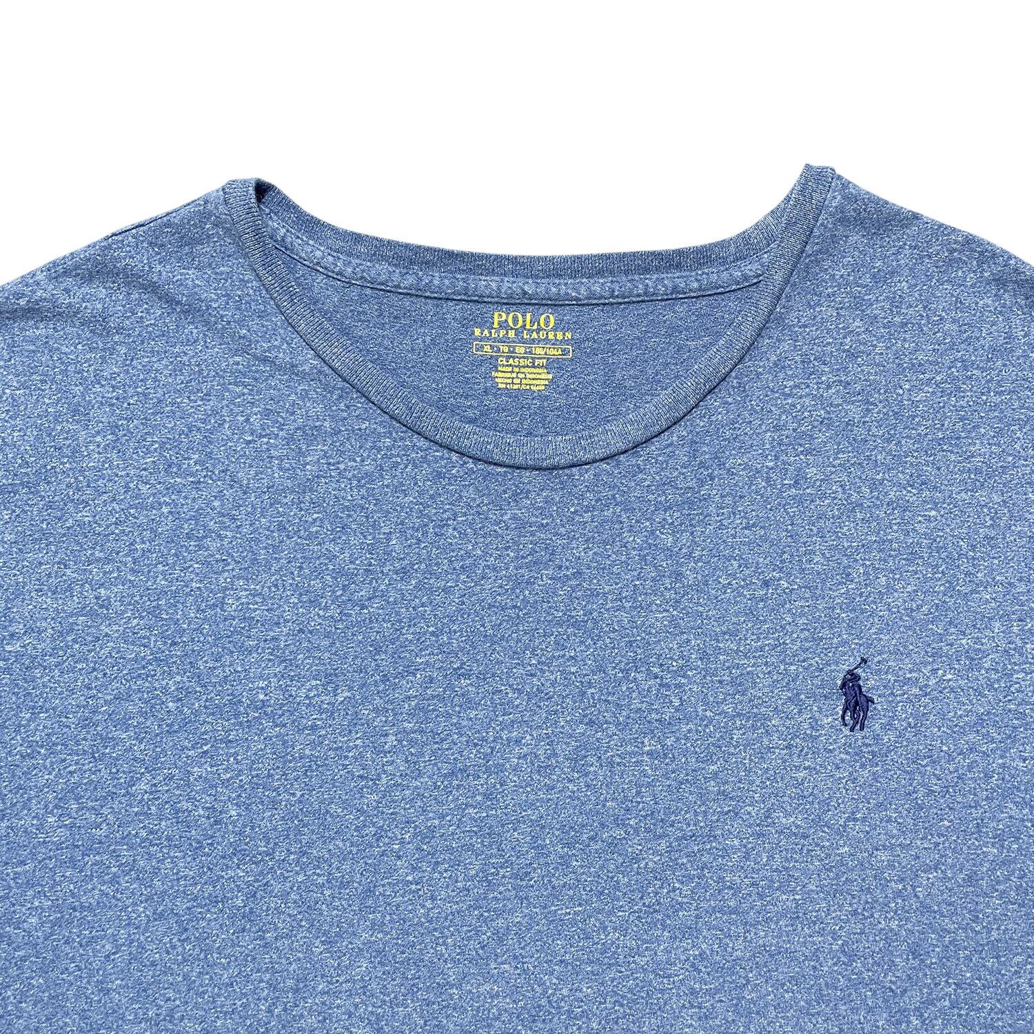 USA 古着 POLO RALPH LAUREN ポロラルフローレン Tシャツ ロゴ 刺繍 ワンポイント ブルー メンズXL クルーネック BA4337