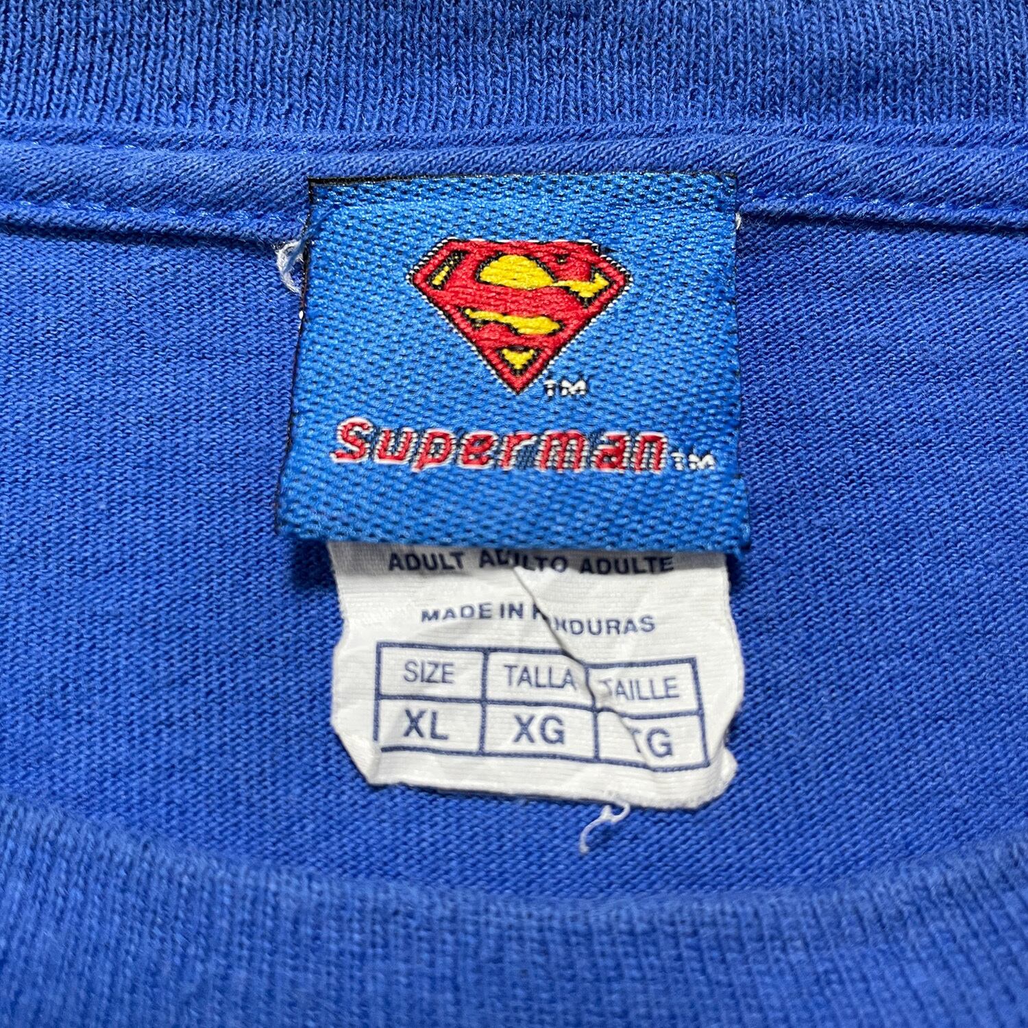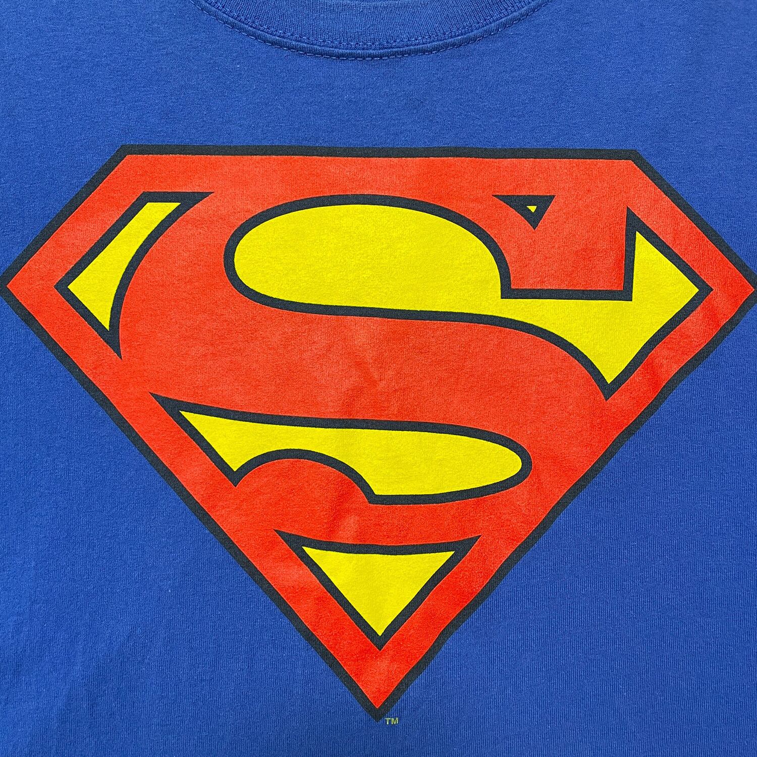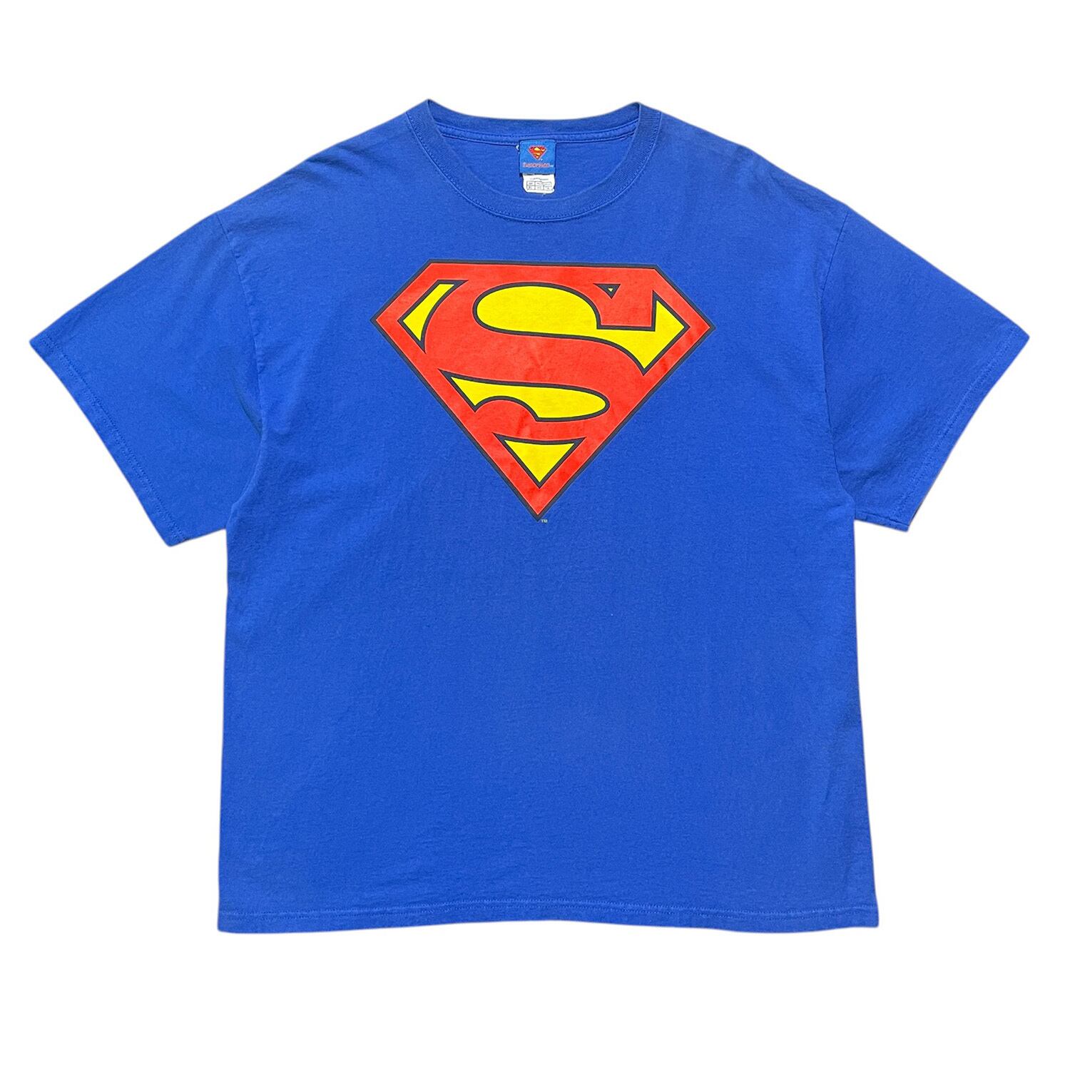 USA 古着 00S DCコミックス スーパーマン Tシャツ ロゴ プリント ブルー メンズXL クルーネック BA4338