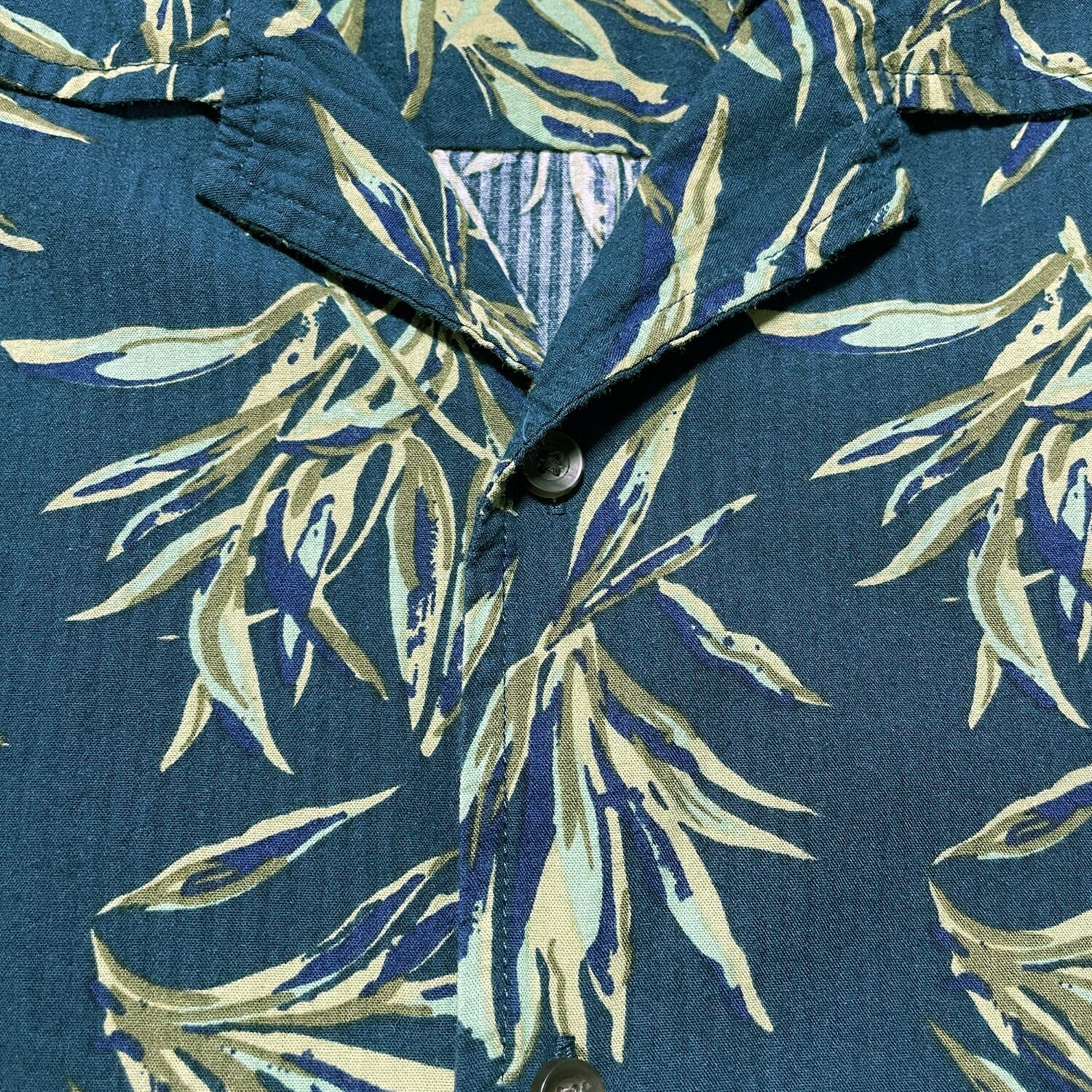 USA 古着 Goodfellow グッドフェロー コットン 開襟 アロハシャツ ハワイアンシャツ リーフ柄 グリーン系 メンズL BF3722