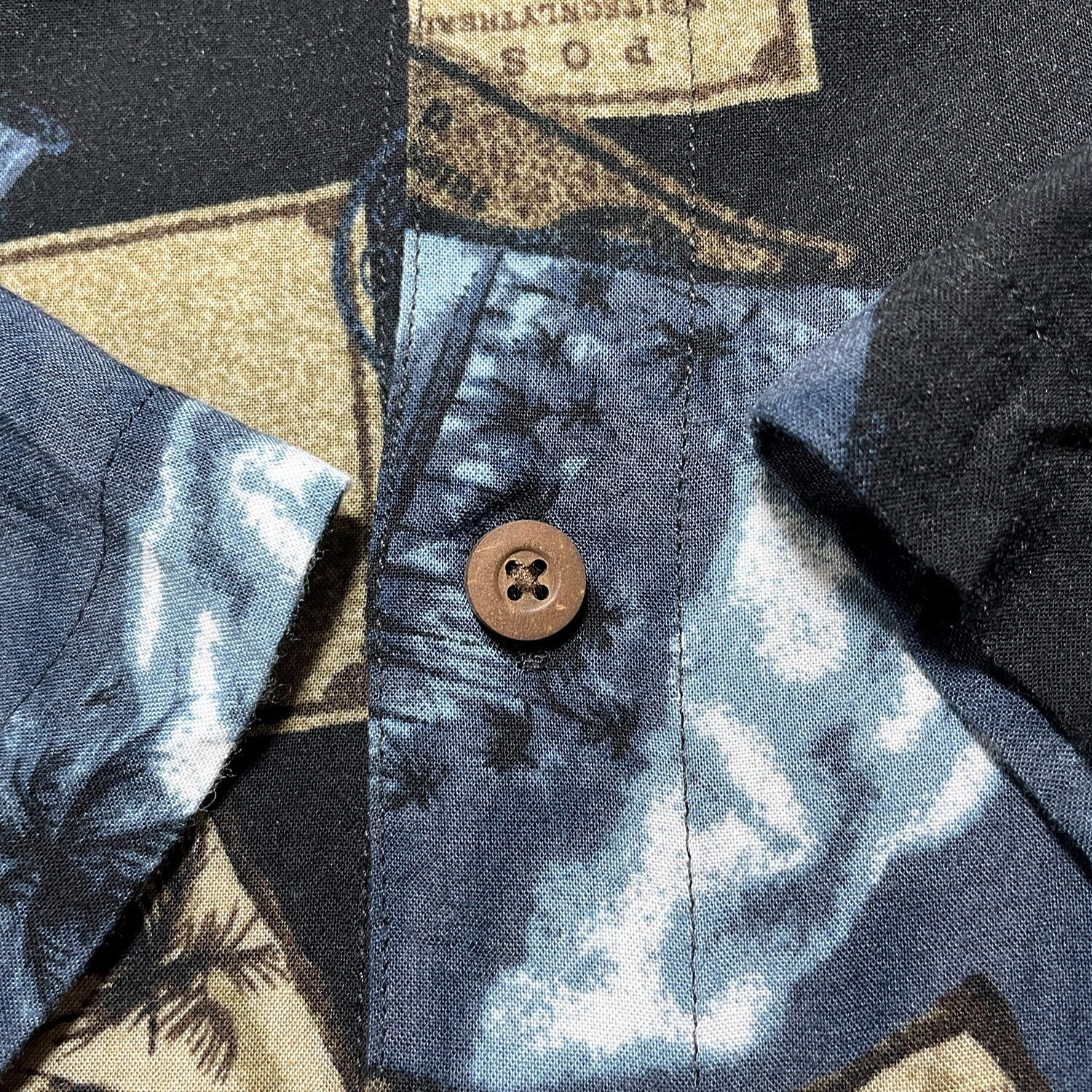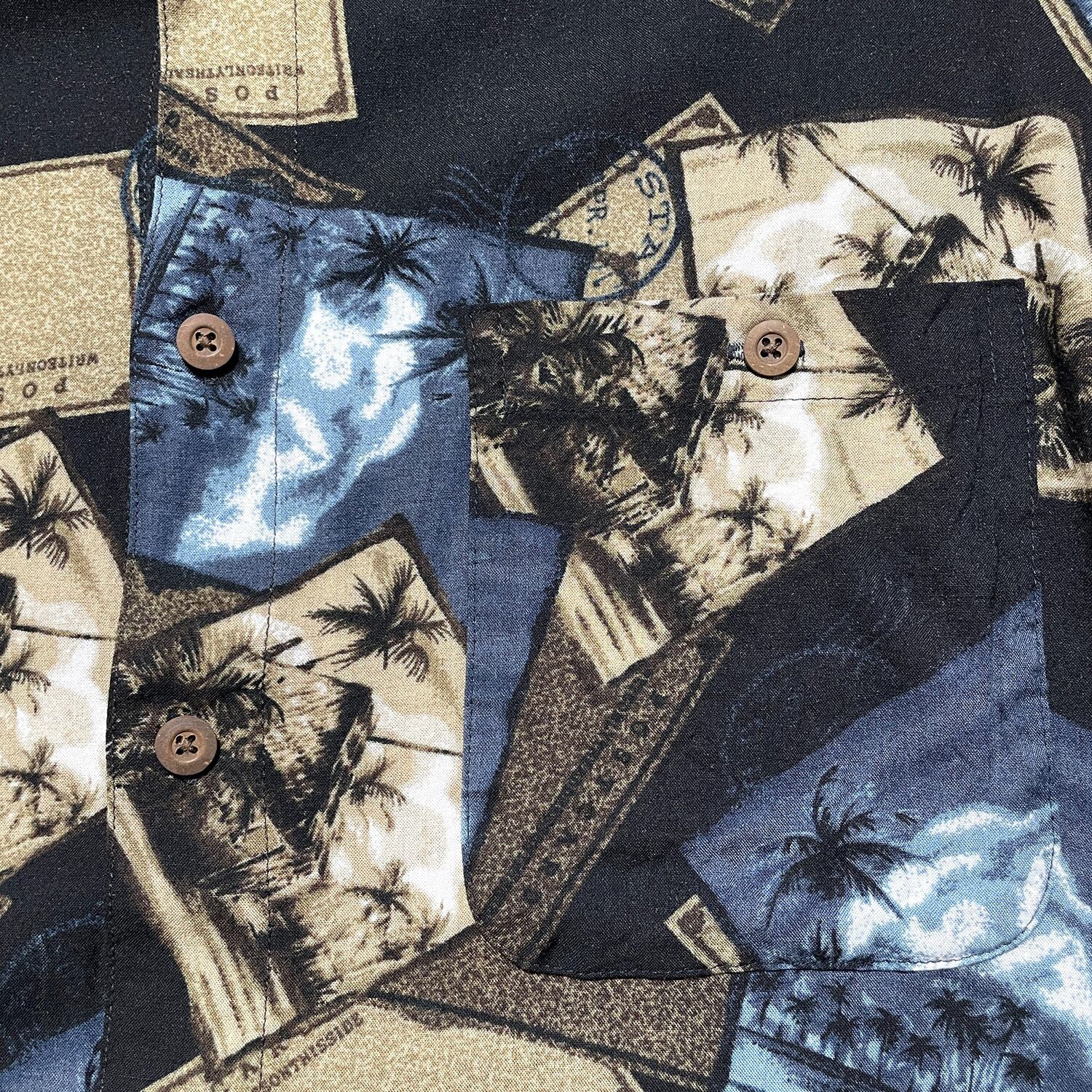 USA 古着 RED MACAW レッドマカウ レーヨン アロハシャツ ハワイアンシャツ ブラック系 メンズL ヴィンテージ BF3725