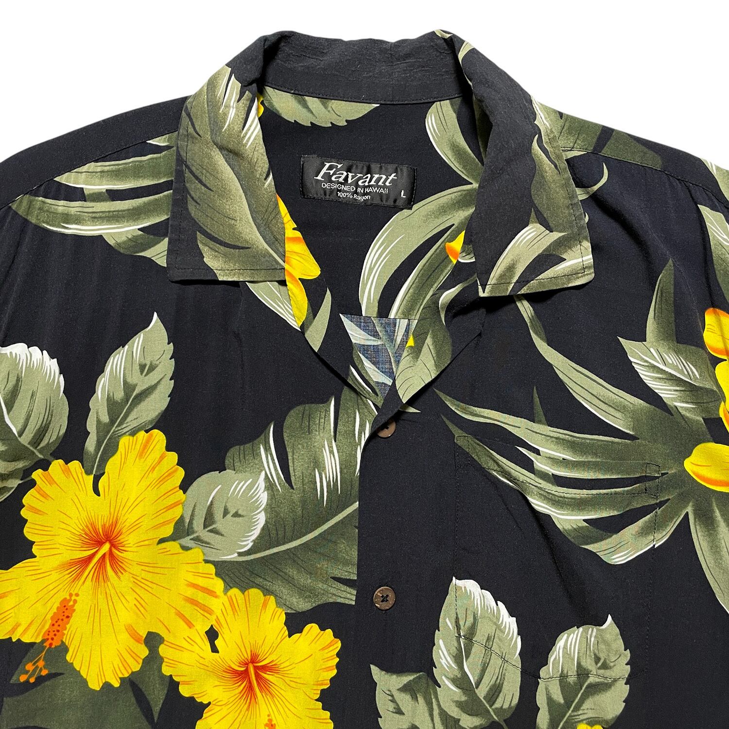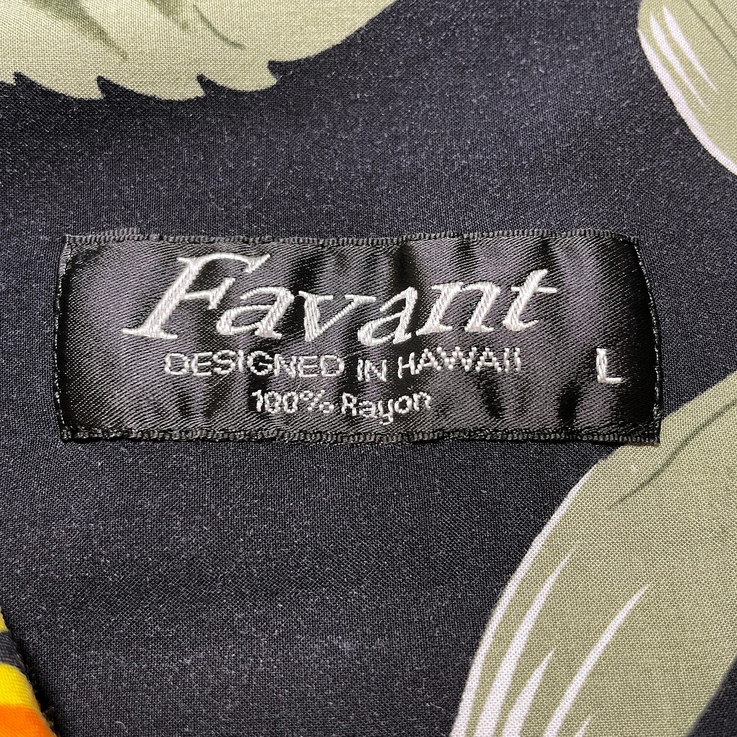 USA 古着 Favant HAWAII ファバント レーヨン 開襟 アロハシャツ ハワイアンシャツ ブラック リーフ柄 メンズL 黒色 ヴィンテージ BF3727
