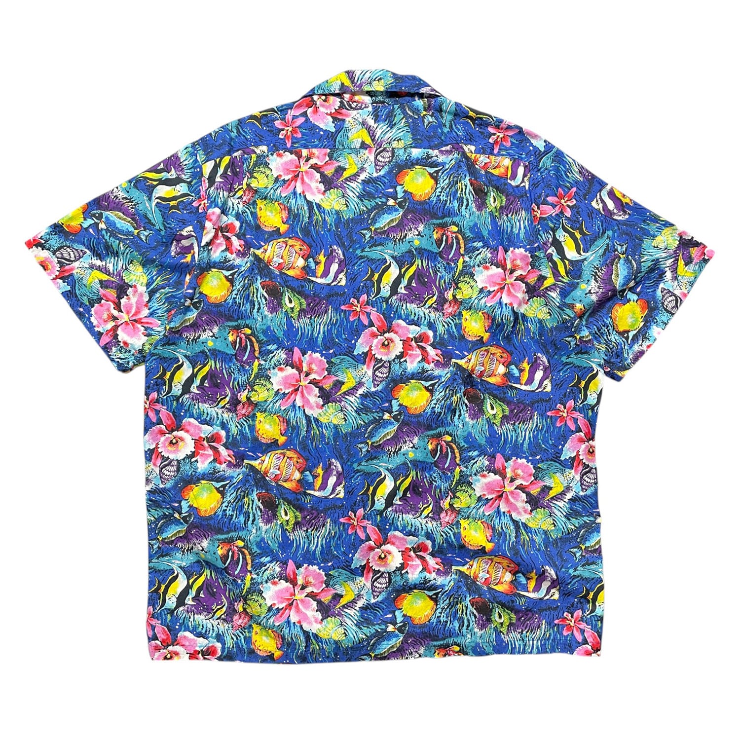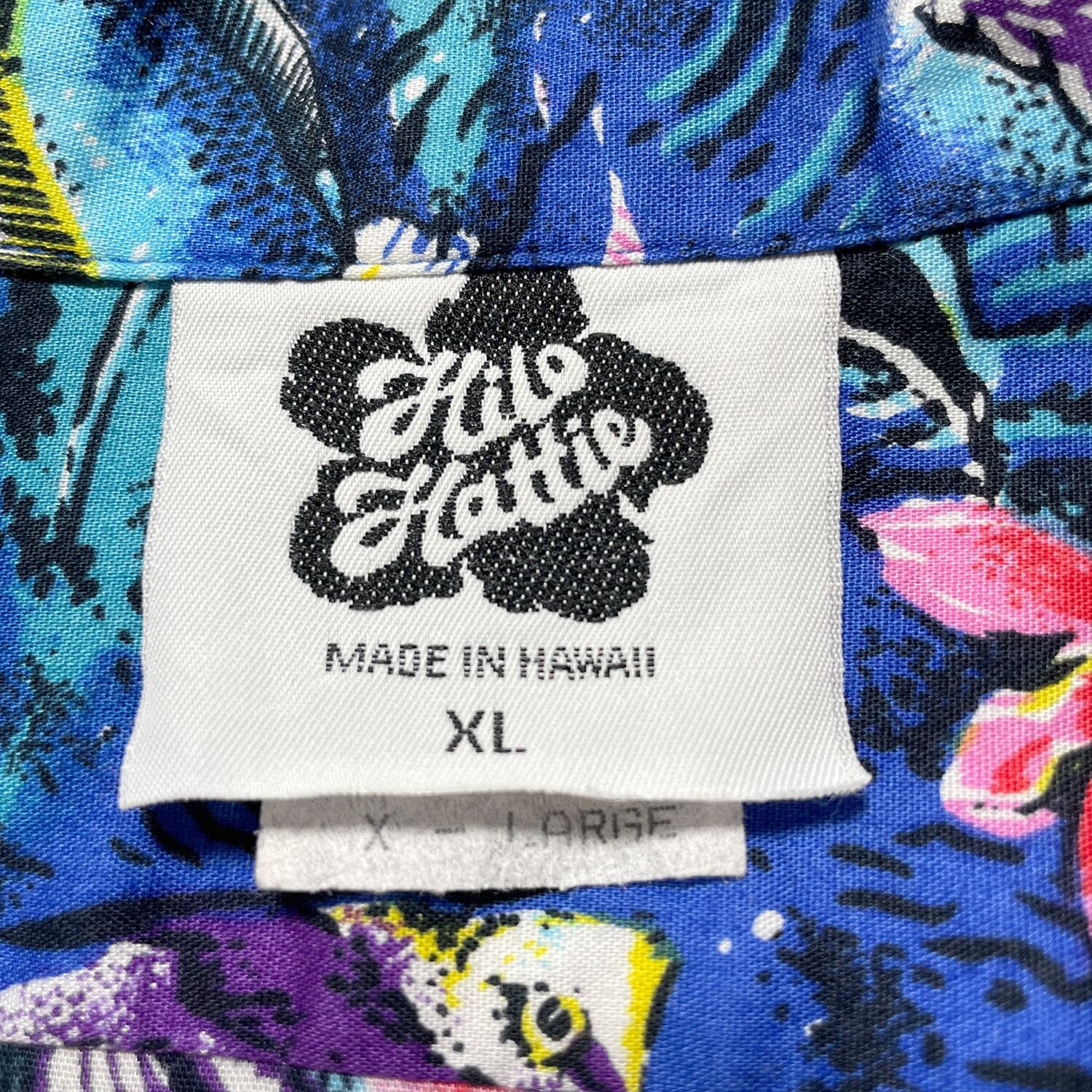 USA 古着 Hilo Hattie ヒロハッティ コットン 開襟 アロハシャツ ハワイアンシャツ ブルー系 熱帯魚 メンズXL ヴィンテージ 総柄 BF3730