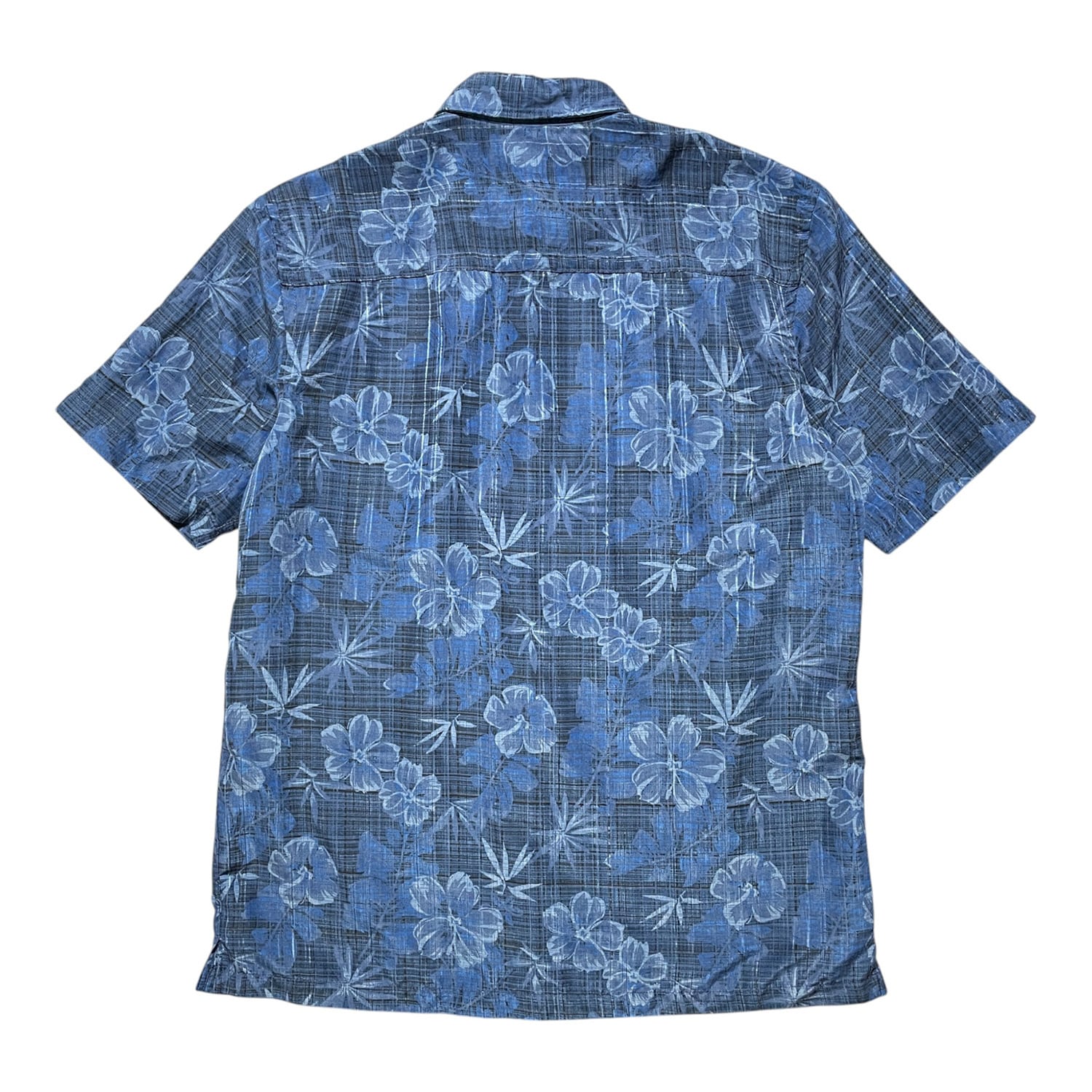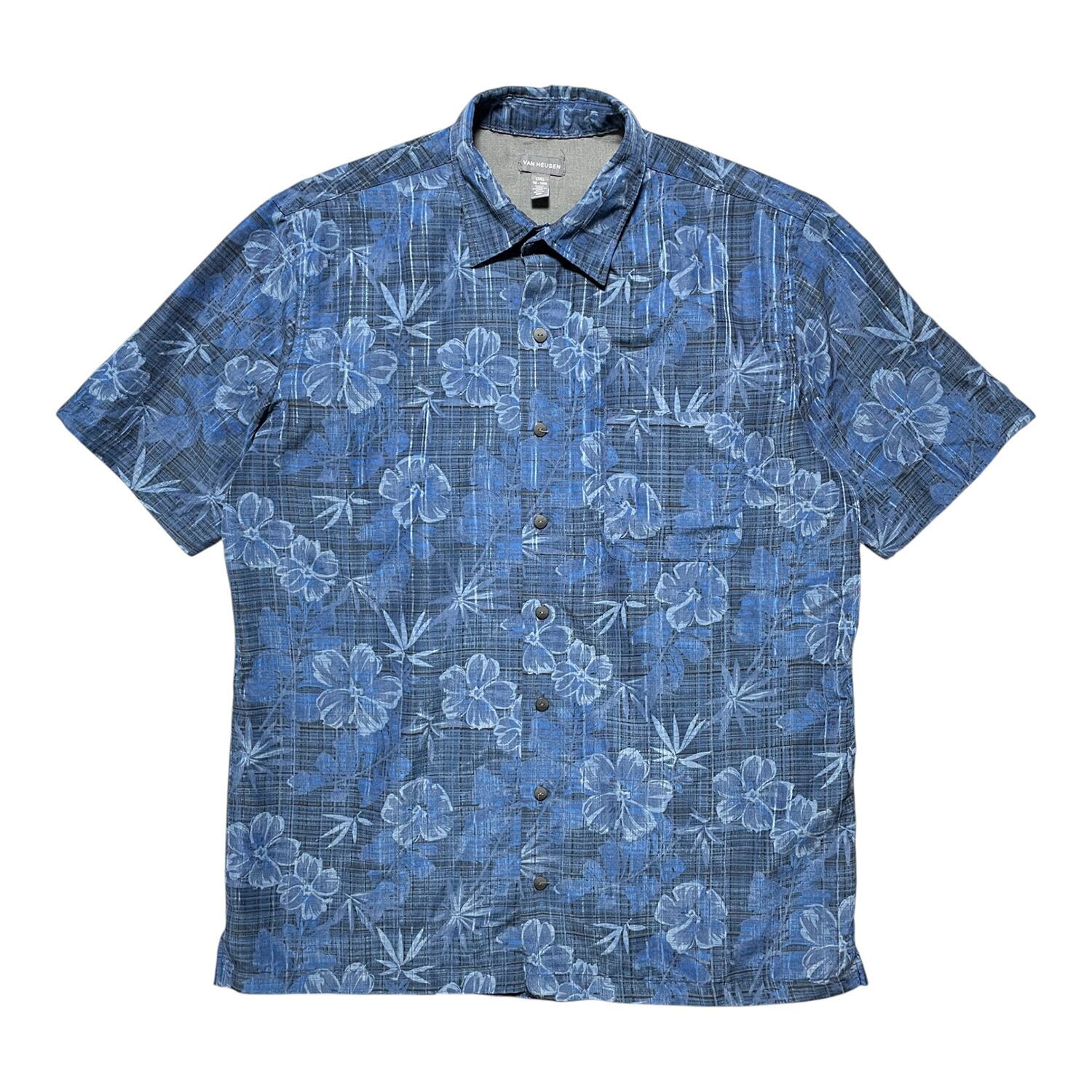 USA 古着 VAN HEUSEN バンヒューゼン ポリエステル アロハシャツ ハワイアンシャツ ネイビー系 メンズL 総柄 BF3731