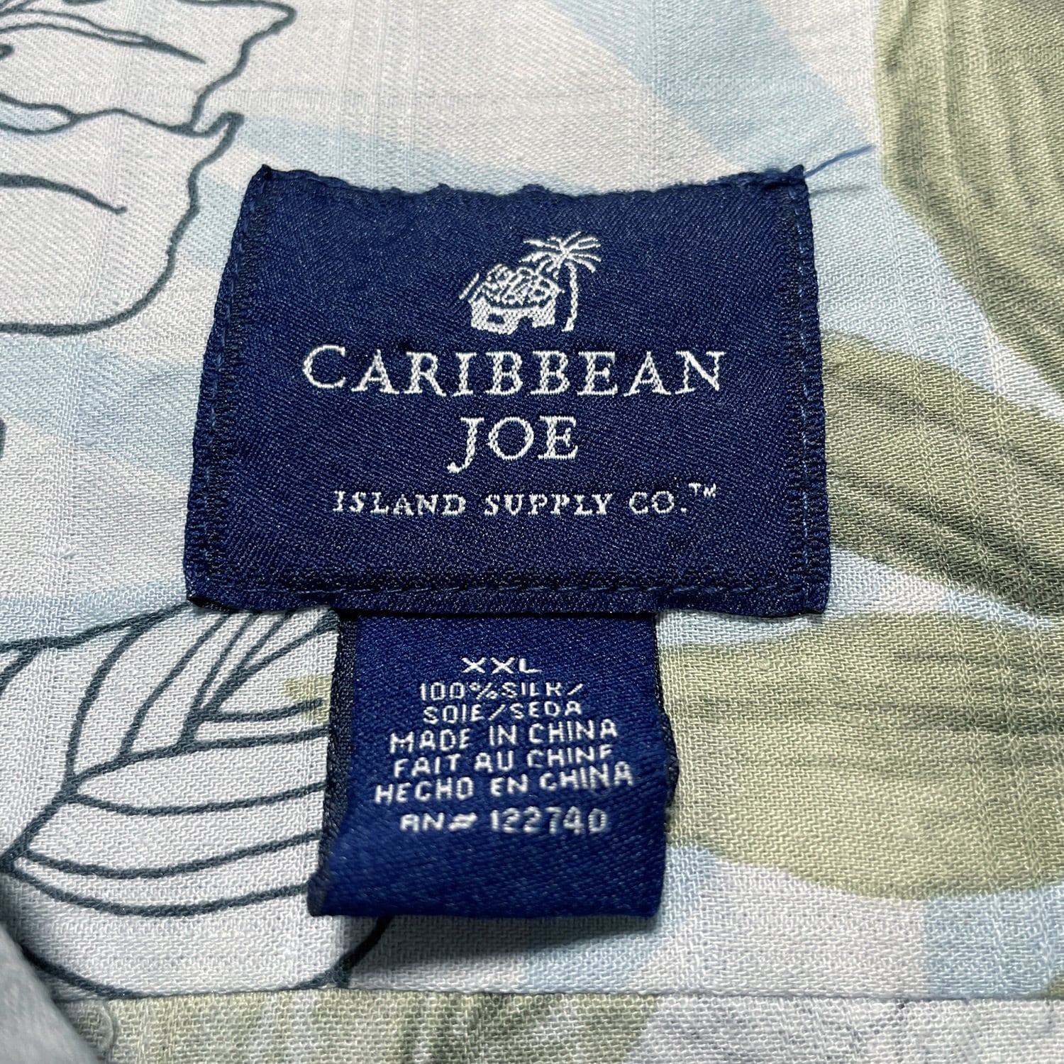 USA 古着 CARIBBEAN JOE カリビアンジョー シルク アロハシャツ ハワイアンシャツ リーフ フラワー ボタニカル柄 メンズXXL グレー 大きいサイズ BF3706