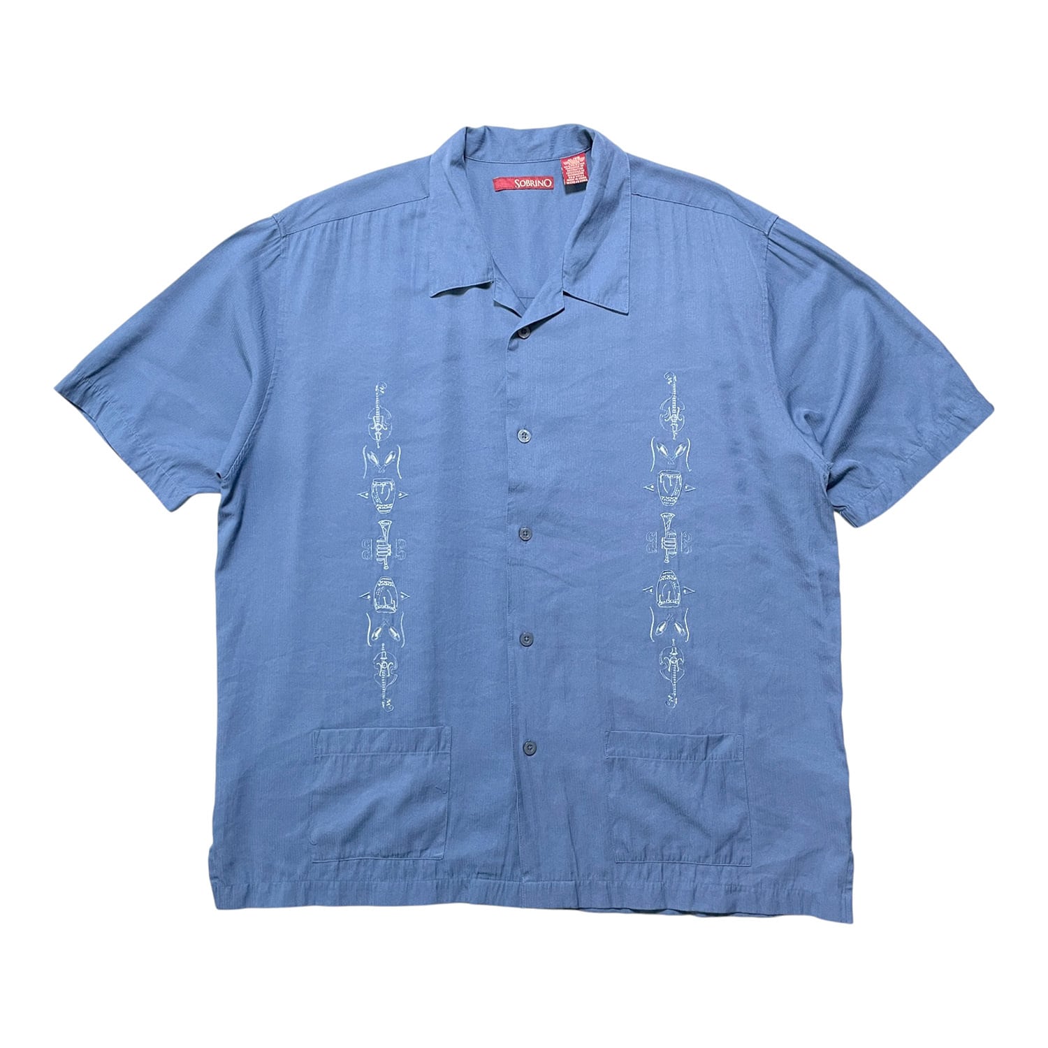 USA 古着 SOBRINO ソブリーノ レーヨン/ポリエステル 開襟 ビーチシャツ アロハシャツ ハワイアンシャツ 楽器 刺繍 メンズXL BF3778