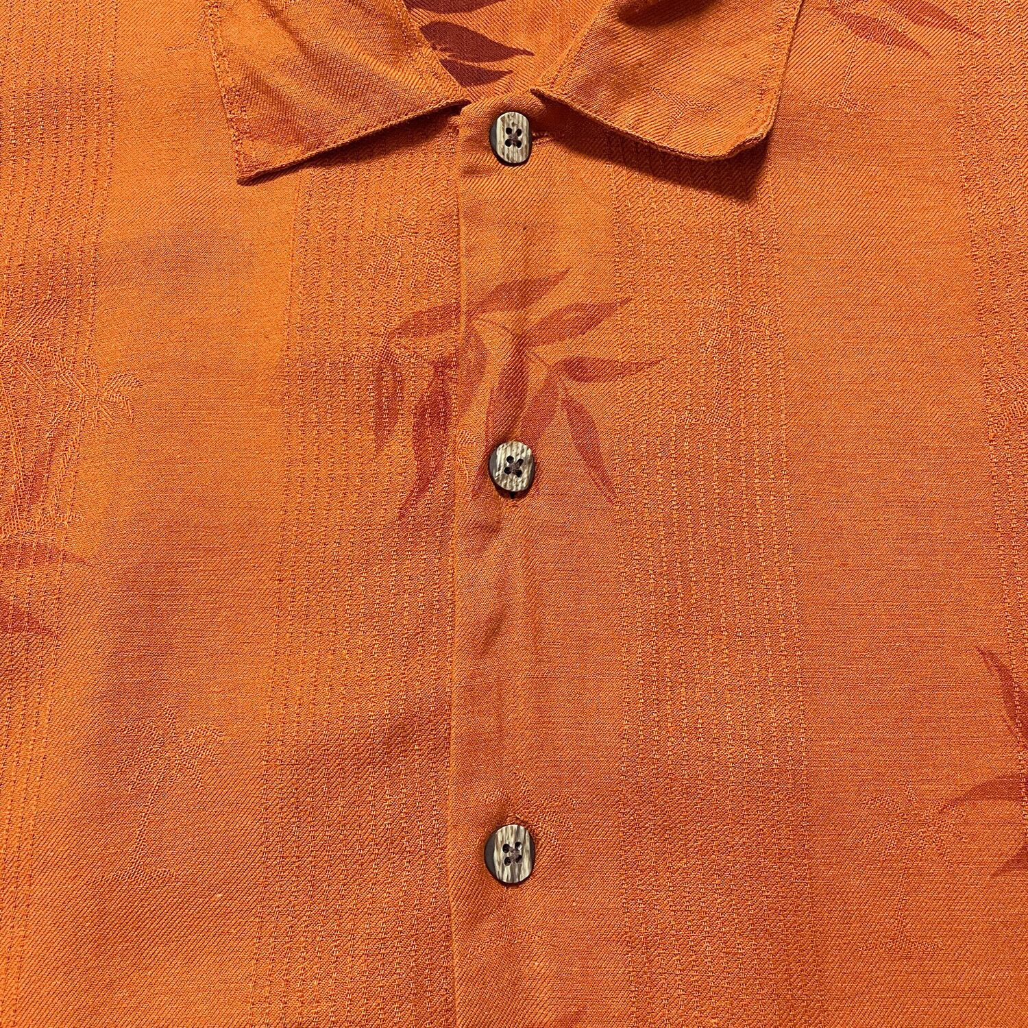 USA 古着 IZOD アイゾッド シルク/コットン アロハシャツ ハワイアンシャツ リーフ パームツリー ハイビスカス柄 メンズXL オレンジ BF3784