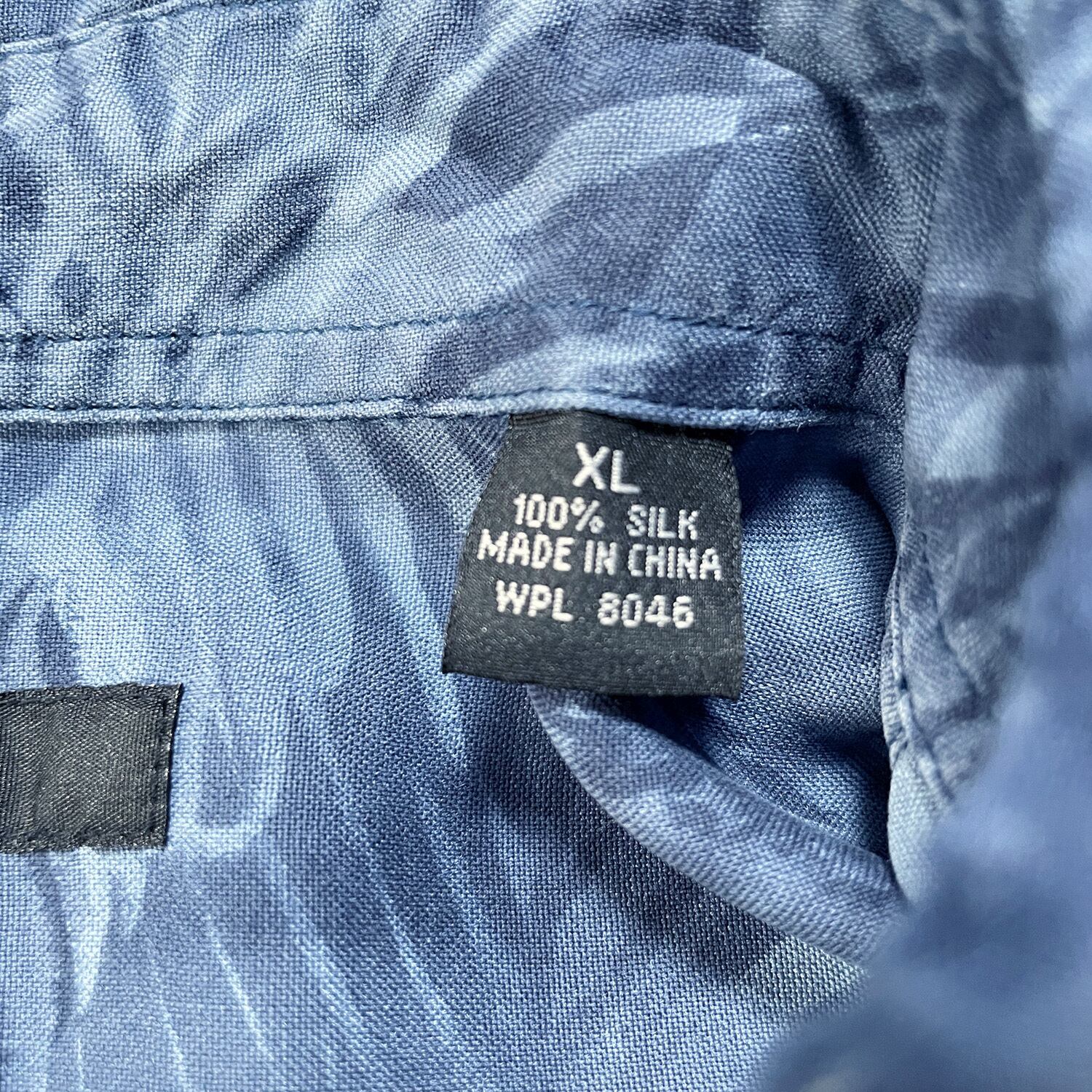 USA 古着 ALFANI シルク アロハシャツ ハワイアンシャツ リーフ柄 総柄 ネイビー メンズXL BF3763