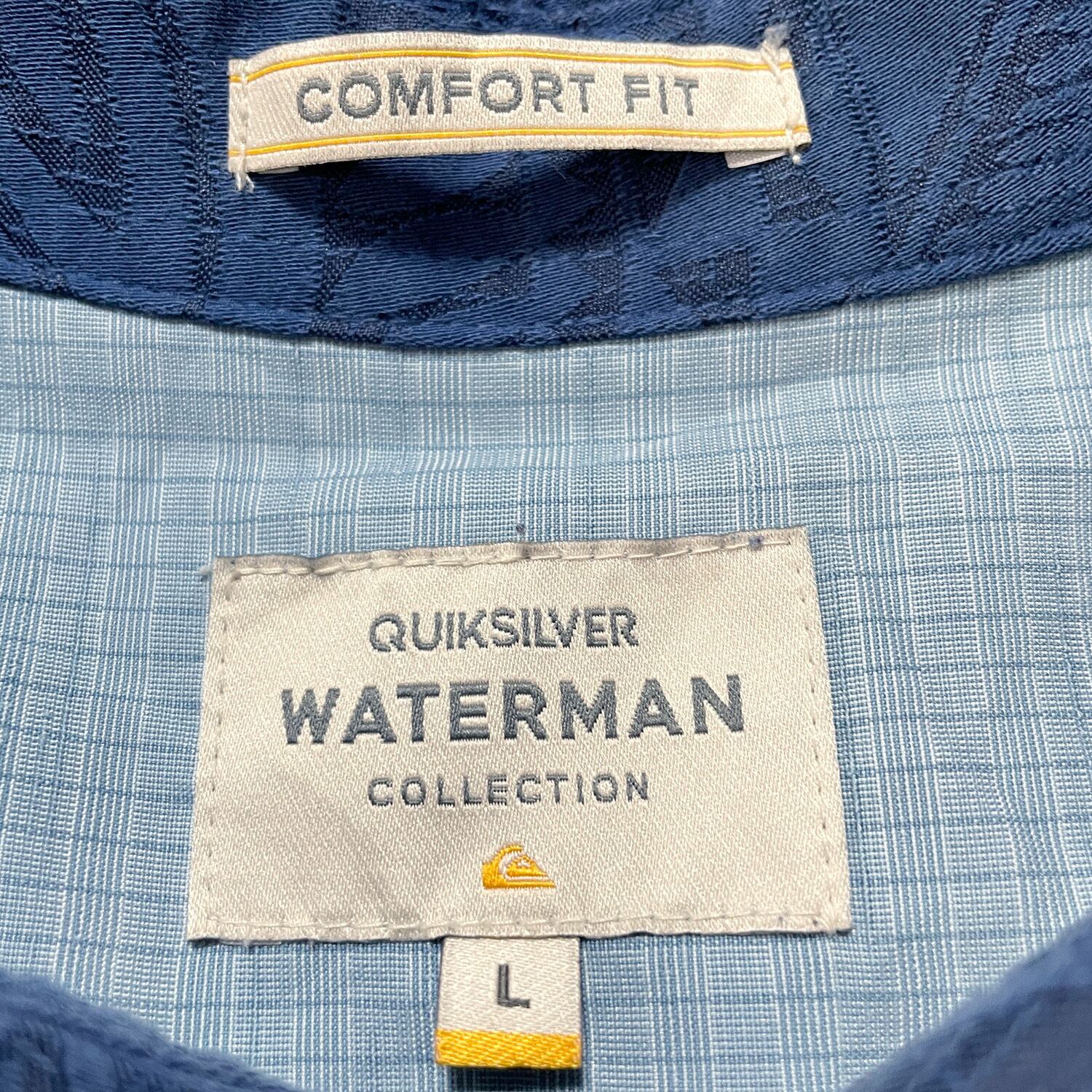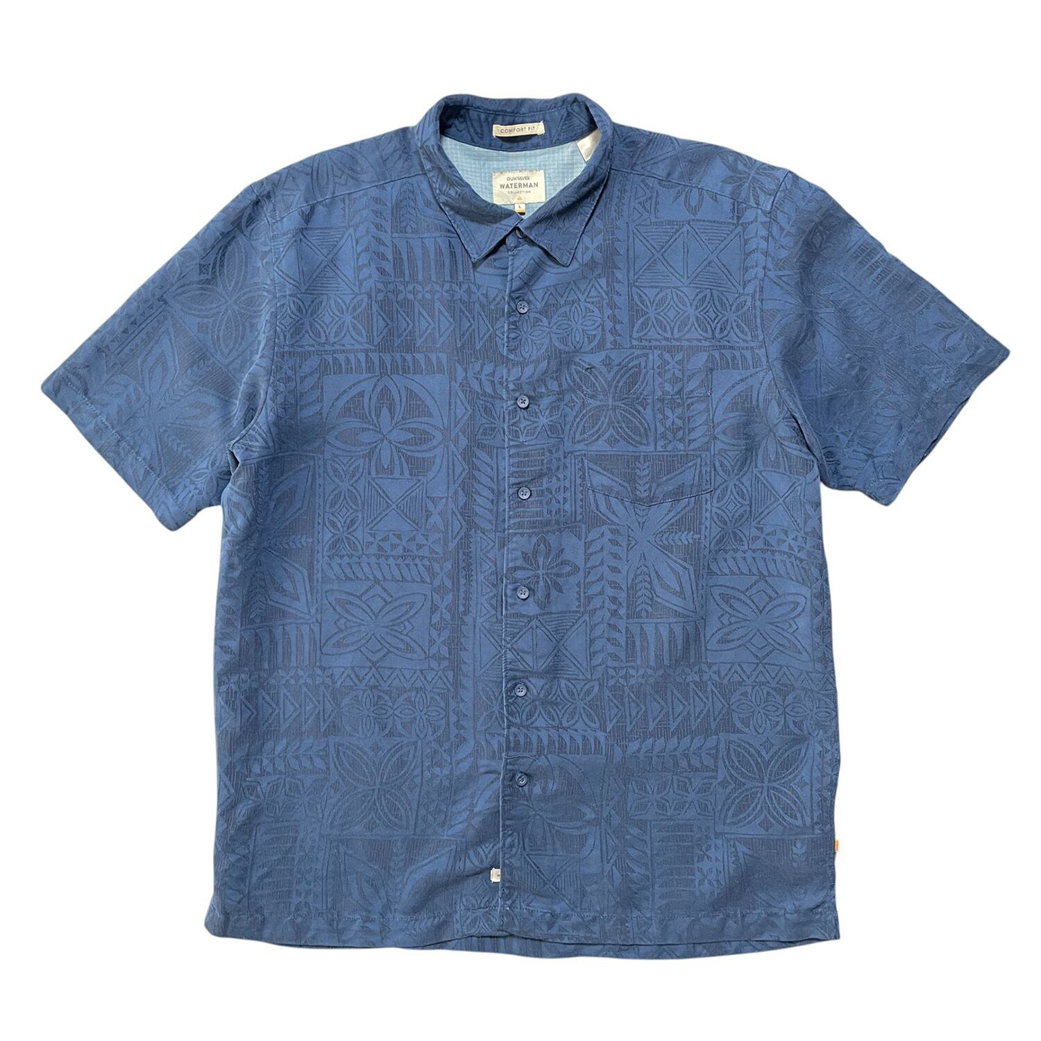 USA 古着 QUIKSILVER クイックシルバー モダール/ポリ アロハシャツ ハワイアンシャツ ジャガード ネイビー トライバル メンズL BF3766