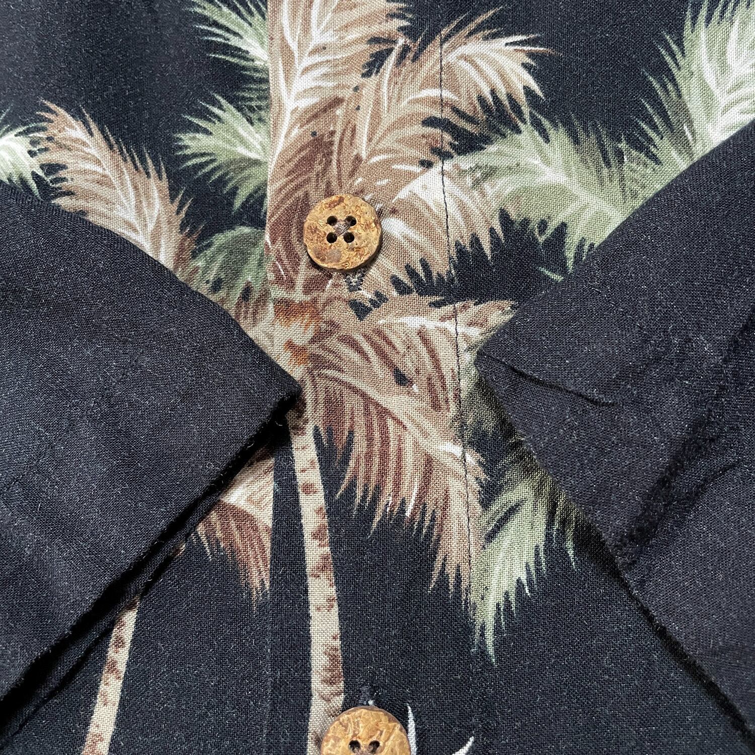 USA 古着 レーヨン アロハシャツ ハワイアンシャツ パームツリー ヤシの木 ブラック BF3768