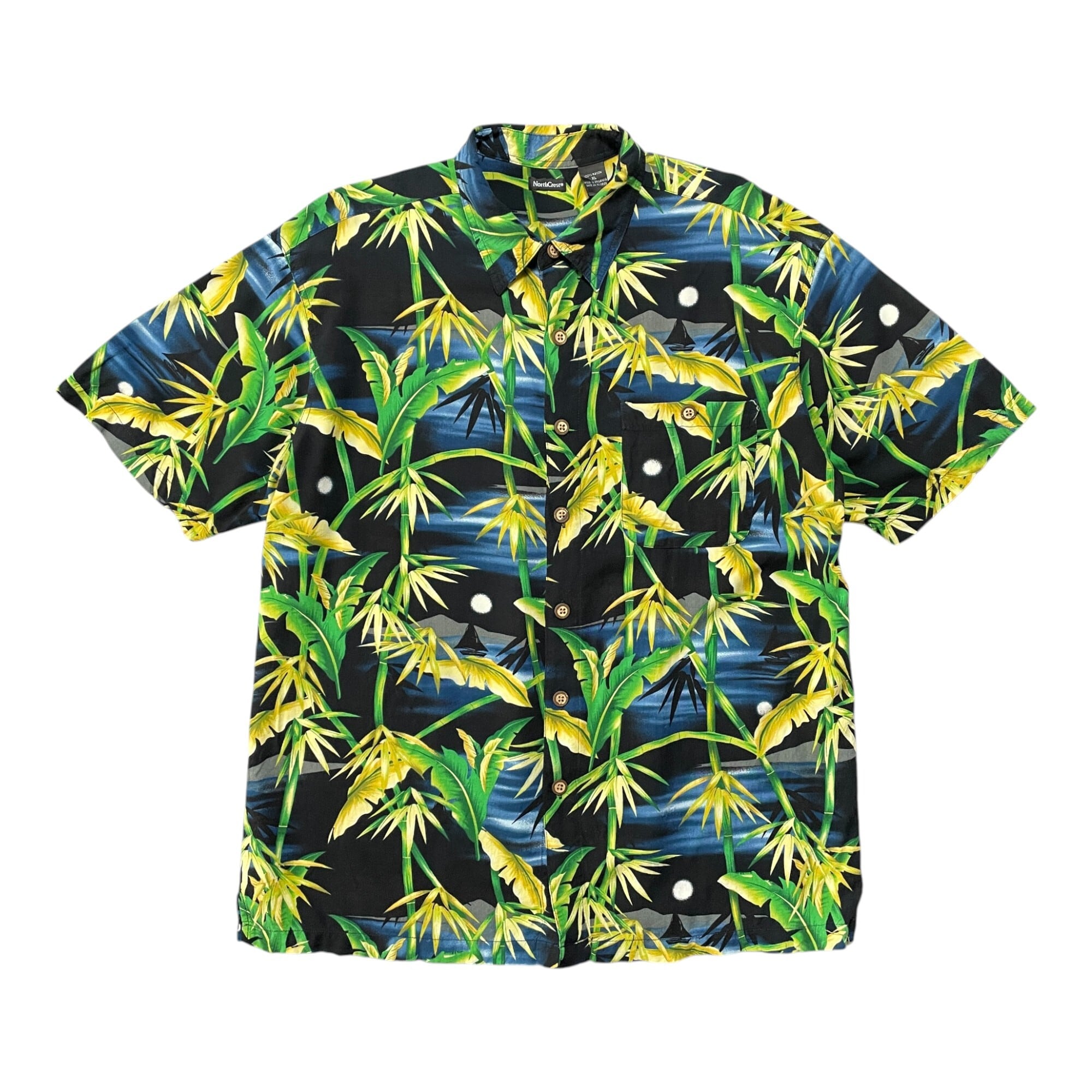 USA 古着 North Crest ノースクレスト レーヨン アロハシャツ ハワイアンシャツ バンブー 竹柄 ブラックメンズXL BF3771