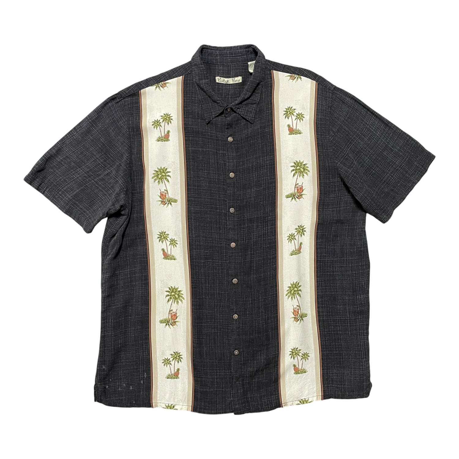 USA 古着 Batik Bay バティックベイ レーヨン アロハシャツ ハワイアンシャツ パームツリー柄 メンズ2XL ブラック 大きいサイズ BF3794