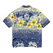 USA 古着 SHUMS UP サムズアップ レーヨン アロハシャツ ハワイアンシャツ ハイビスカス パームツリー柄 メンズM ブルー BF3795
